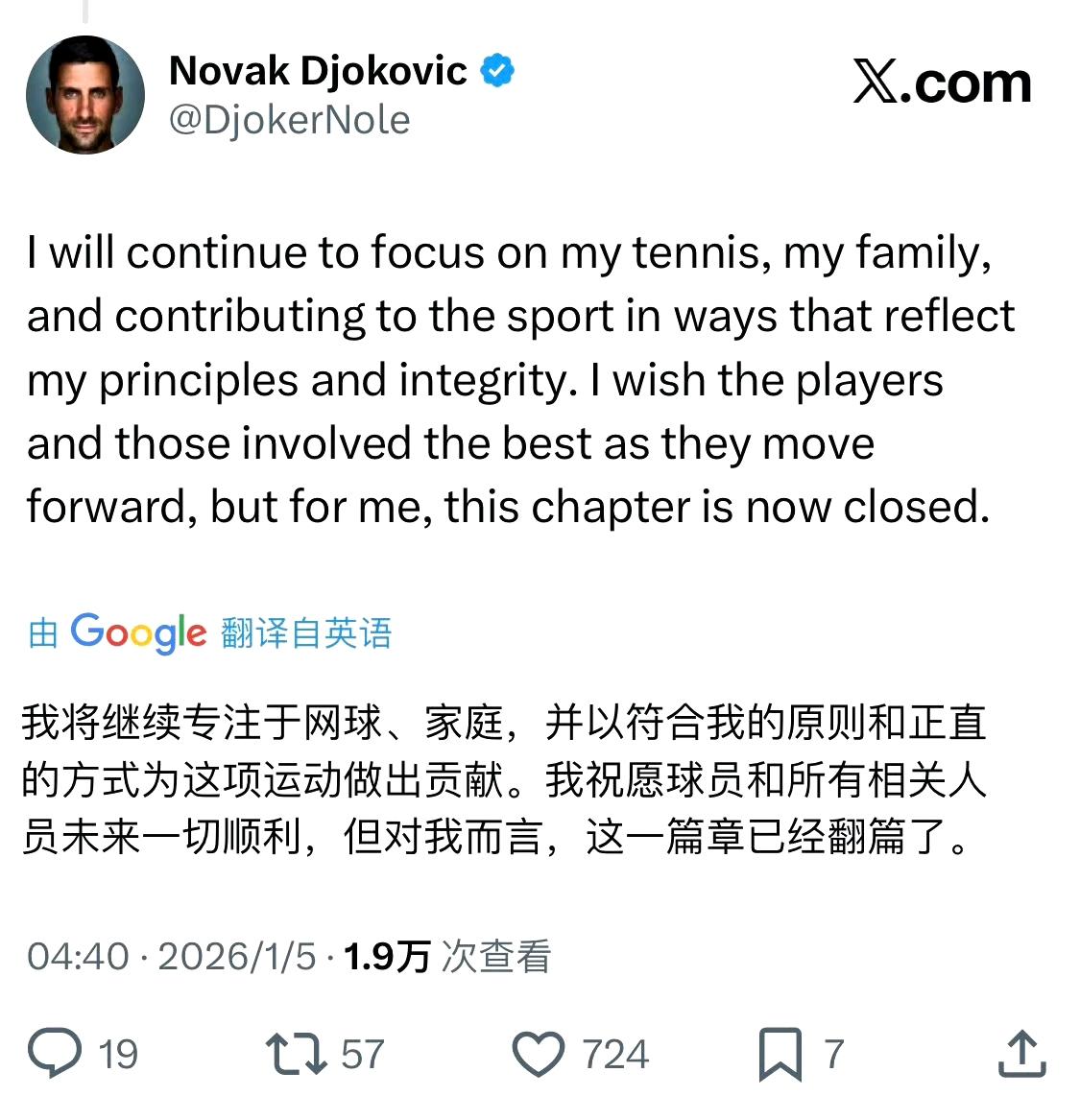 不管真相如何,对于现阶段的德约来说,能摆脱场外的宫斗纷扰,都会是一个大优局面。