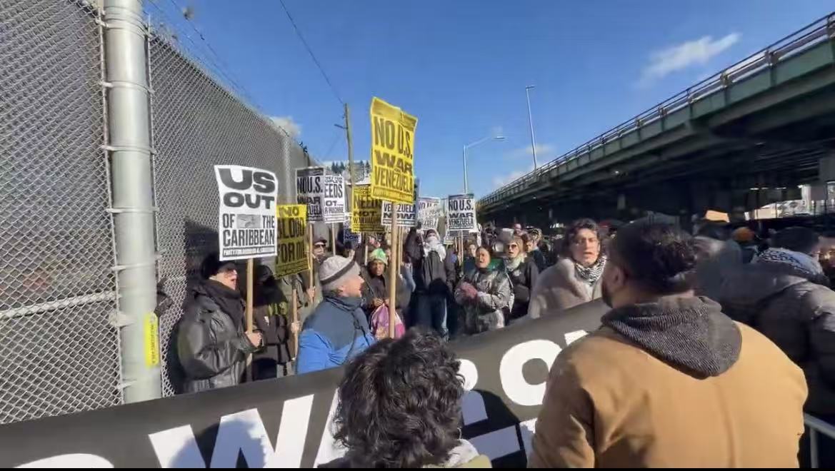 央视记者当地时间1月4日获悉,数十名抗议者聚集在美国纽约布鲁克林关押委内瑞拉总统马杜罗的拘留中心外,反对美国对委内瑞拉采取军事行动。