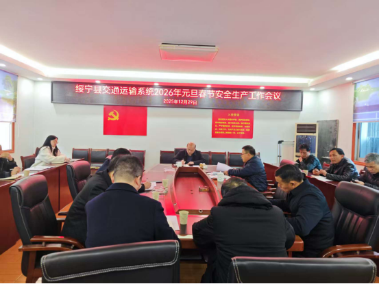 12月29日,绥宁县交通运输局系统召开2026年元旦春节安全生产工作会议,学习传达省市县交通运输安全生产工作文件精神,要求各单位扎实落实到位,坚持关口前移、防线前置,有效防范化解重大风险,切实保障全县元旦春节期间交通运输生产形势稳定。