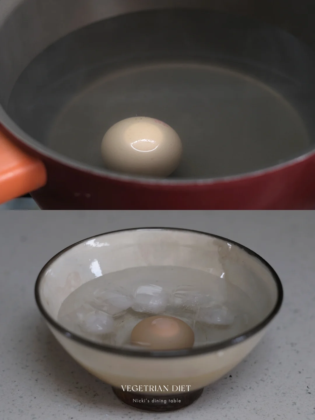 •煮饭的时候用奶锅煮一个温泉鸡蛋。(锅中煮水煮沸后加入1大碗冷水,放入鸡蛋,盖上锅盖焖10分钟,取出放入冰水中放凉即可。)