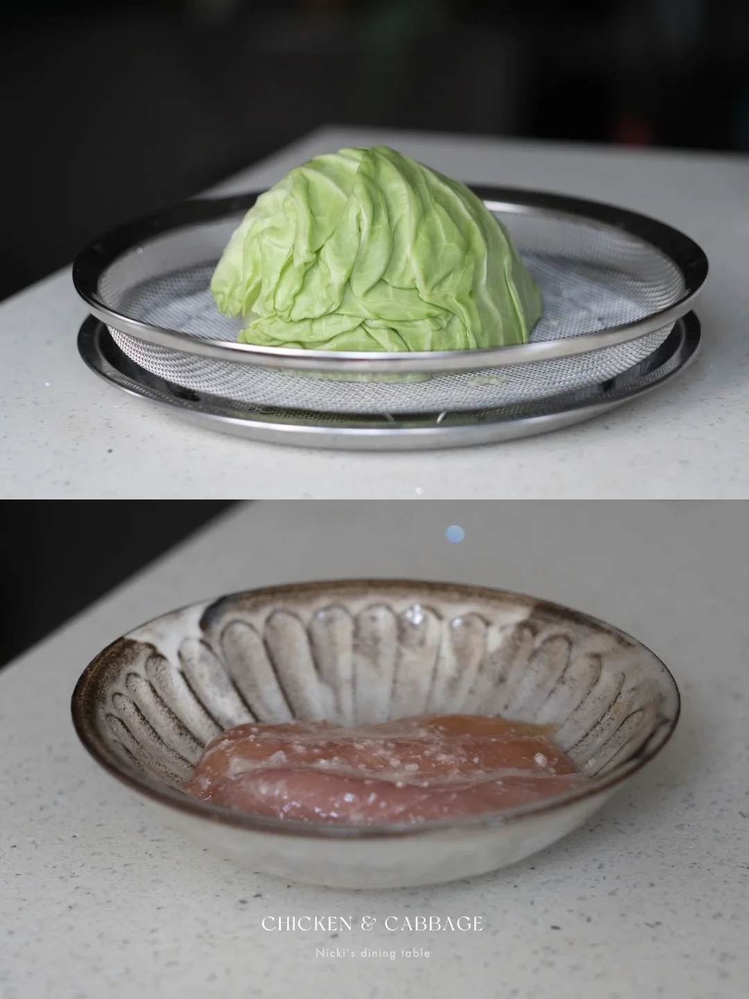🥬食材:1/4卷心菜、3条鸡里脊