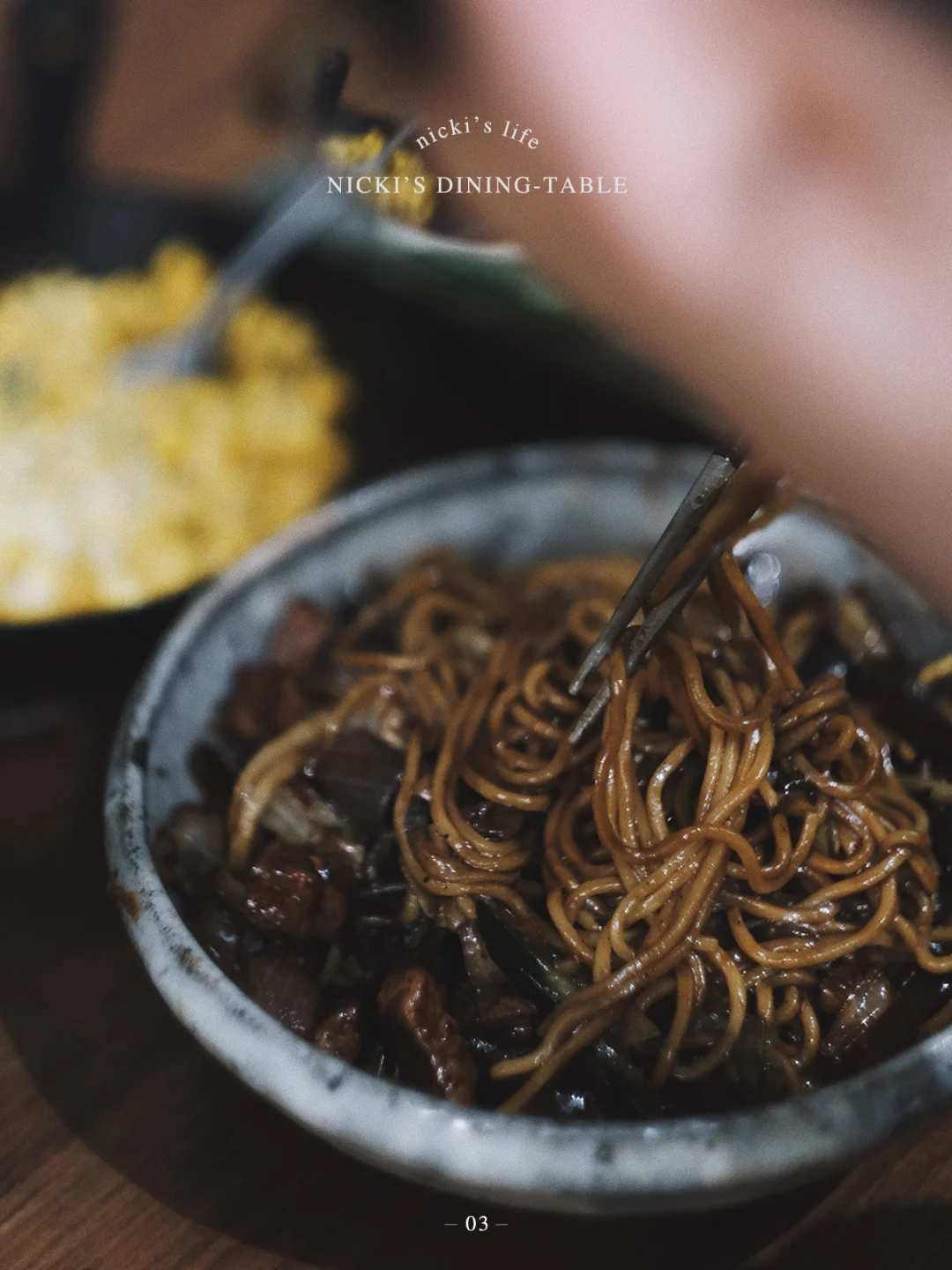 • 令取一锅煮面,煮好的面一定要用冷水冲洗,更筋道,摆盘开吃。