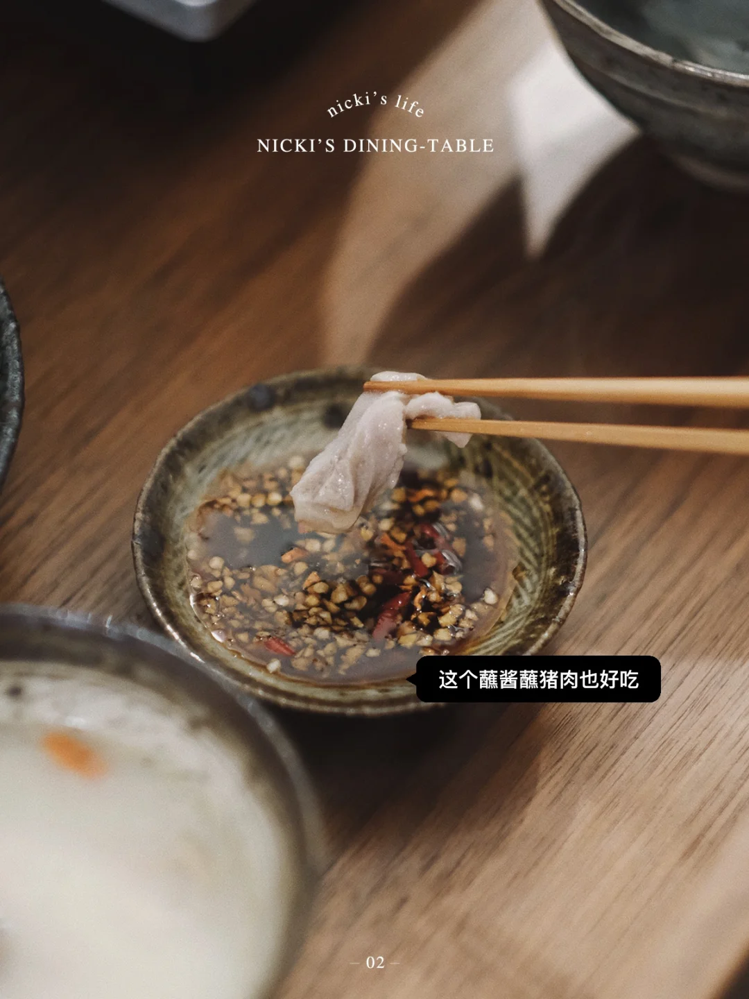 •蘸酱:2勺生抽+1勺麻油+小米椒+蒜末