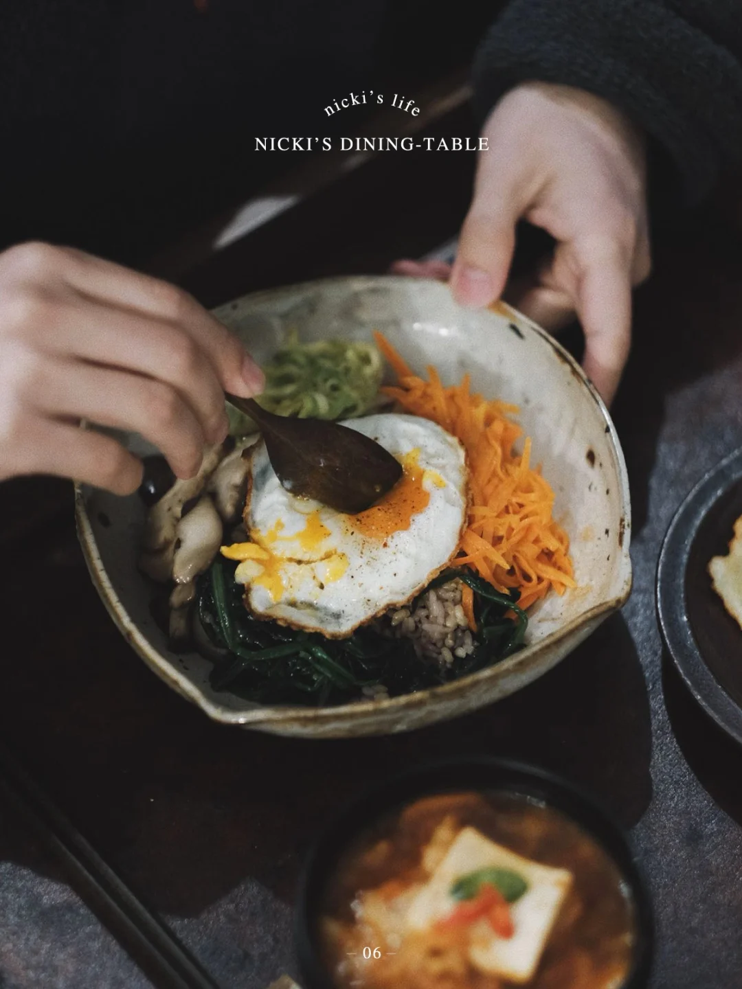• 酱汁:2勺韩国辣酱➕香油1勺➕2勺雪碧➕白芝麻1勺,倒匀淋在拌饭上即可。