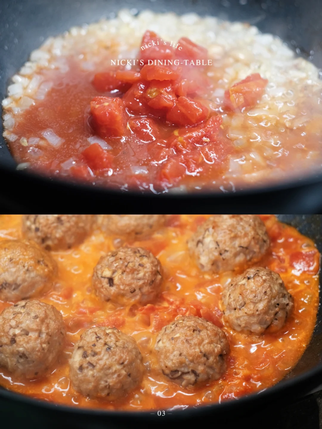 •锅中倒油,放入半个洋葱末,炒香后,倒入番茄罐头,加入1碗淡奶油搅拌均匀后,放入烤好的素丸子,加盐和胡椒调味,盖上锅盖焖煮10分钟左右,让丸子都裹上酱汁,最后撒入一把欧芹碎即可。