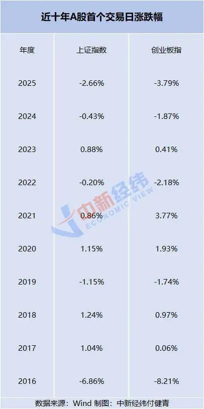 今日,A股迎来2026年首个交易日。中新经纬梳理发现,近10年A股全年首个交易日上证指数、创业板指均呈现“五涨五跌”,A股能否在2026年迎来开门红?