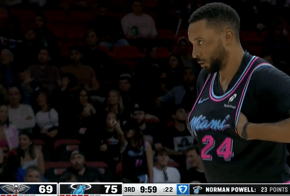 比赛第三节,鲍威尔手起刀落再中三分,目前8中7、三分7中6高效砍下23分。