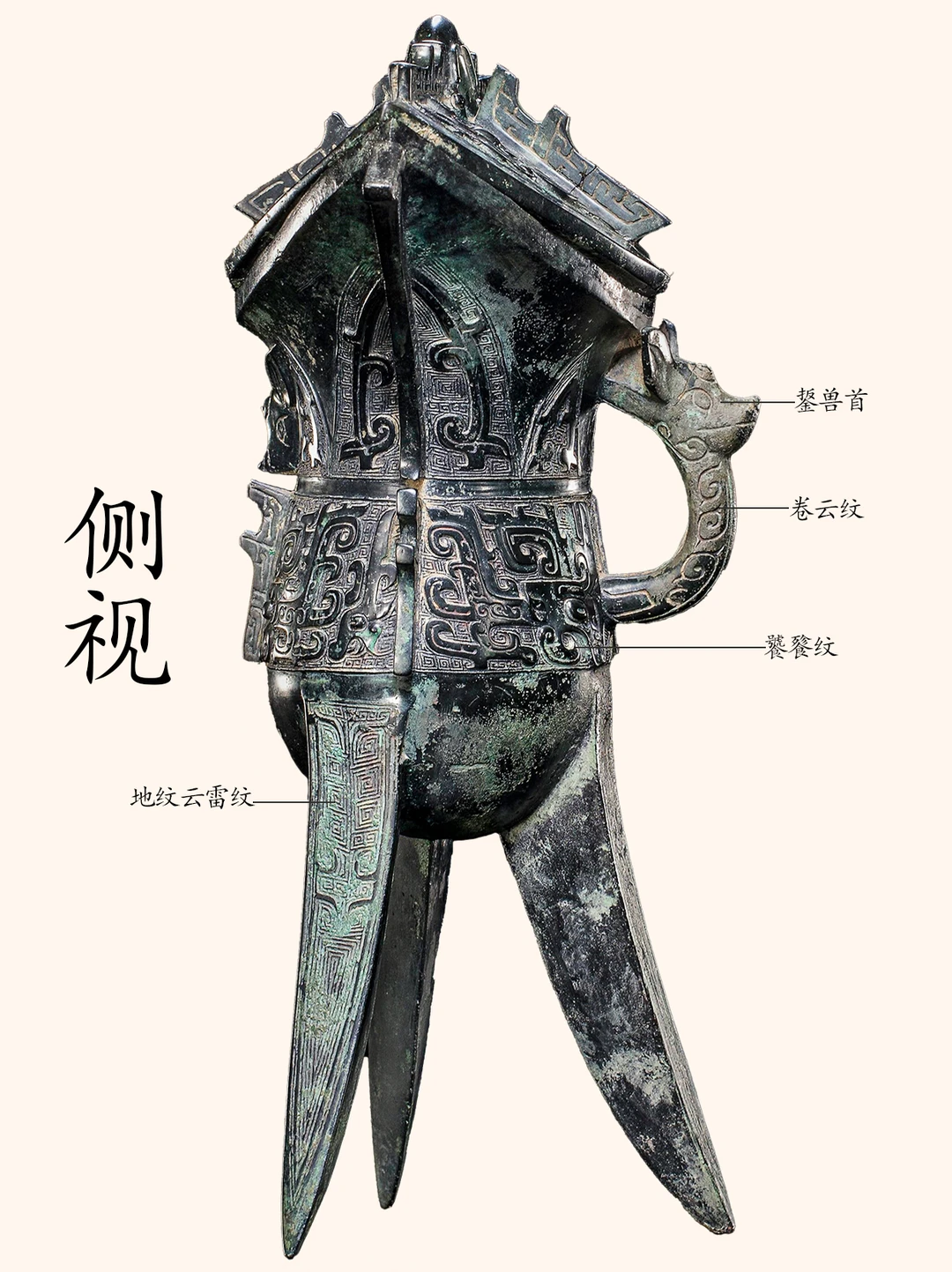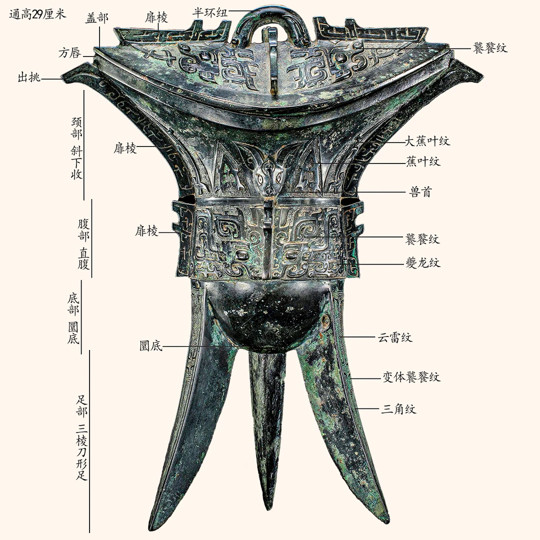 1986年8月,河南省信阳浉河港乡农民在浉河滩修筑水坝时,在河道黑色淤泥中发现一批青铜器。地、县文物与公安部门闻讯后前去调查,共收集青铜器14件。《河南信阳县狮河港出土西周早期铜器群》一文中依据铜器铭文和器体锈色将14件青铜器分为“父乙”和“父丁”两群,并认为该批铜器可能是由于洪水冲垮墓葬而将其带入河道后沉积的。父乙角系属于“父乙”铜器群10件中的一件。父乙角,共出土两件,形制、纹饰、尺寸与铭文近同,后分别收藏于信阳博物馆和河南博物院。 父乙角铭文释文有多种,有兴趣的朋友可自行检索。 后期专门给大家释读。 青铜器 考古 历史 博物馆 古文字