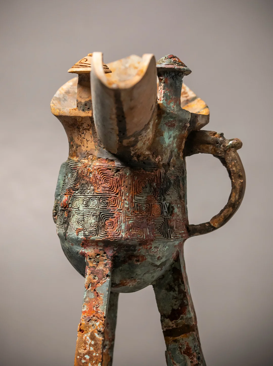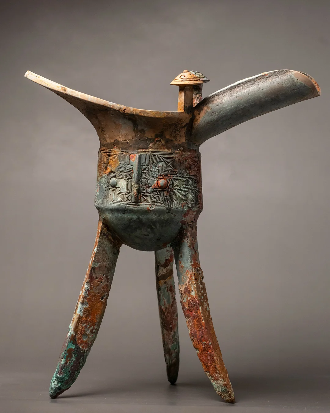 个人藏品饕餮纹爵,初步清理效果分享。