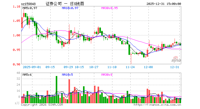 12月31日,证券ETF国联安(159848)跌0.52%,成交额588.58万元。当日份额增加50.00万份,最新份额为1.44亿份,近20个交易日份额减少2500.00万份。最新资产净值计算值为1.39亿元。