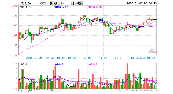 1月5日,MSCI中国A股ETF(512160)开盘涨0.00%,报1.475元。MSCI中国A股ETF(512160)重仓股方面,贵州茅台开盘涨0.57%,宁德时代涨0.75%,工业富联涨2.00%,招商银行涨0.90%,长江电力涨0.04%,紫金矿业涨2.41%,中国平安涨1.17%,比亚迪涨0.70%,海光信息涨1.38%,寒武纪涨1.43%。