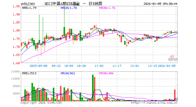 1月5日,MSCI中国A股ETF基金(512360)开盘涨0.00%,报1.791元。MSCI中国A股ETF基金(512360)重仓股方面,贵州茅台开盘涨0.57%,宁德时代涨0.75%,工业富联涨2.00%,招商银行涨0.90%,长江电力涨0.04%,寒武纪涨1.43%,紫金矿业涨2.41%,海光信息涨1.38%,中国平安涨1.17%,比亚迪涨0.70%。