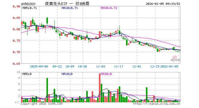 1月5日,疫苗龙头ETF(561920)开盘跌0.14%,报0.701元。疫苗龙头ETF(561920)重仓股方面,智飞生物开盘涨0.16%,万泰生物跌0.04%,沃森生物涨0.37%,荣昌生物跌0.12%,辽宁成大涨0.18%,康泰生物涨0.07%,长春高新跌0.05%,甘李药业跌0.21%,山东药玻涨1.10%,复星医药涨0.34%。