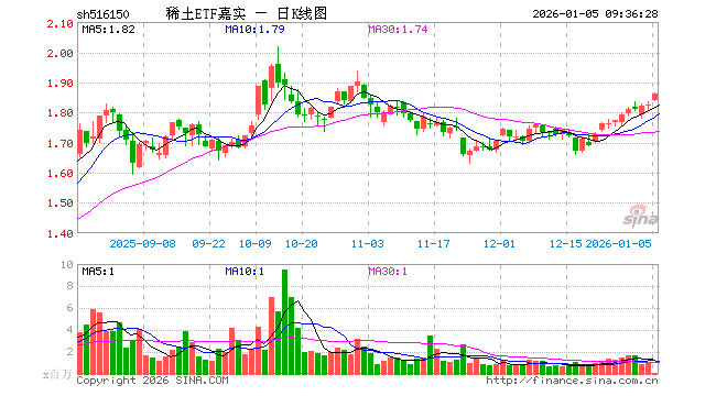 1月5日,稀土ETF嘉实(516150)开盘涨0.71%,报1.838元。稀土ETF嘉实(516150)重仓股方面,北方稀土开盘涨0.00%,卧龙电驱跌2.24%,领益智造涨0.32%,中国稀土涨0.39%,盛和资源涨0.00%,格林美涨1.56%,金风科技涨10.00%,包钢股份涨0.42%,厦门钨业涨2.26%,中国铝业涨4.09%。