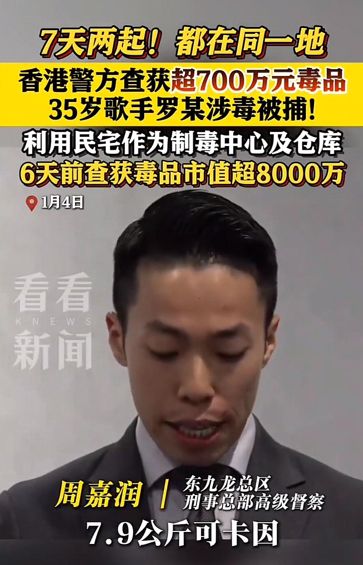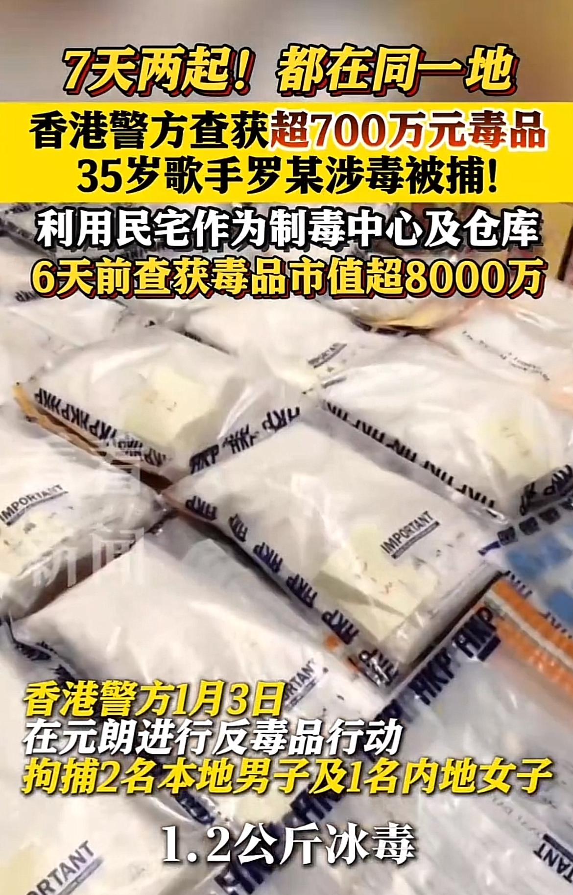 香港娱乐圈又爆大瓜!1月3日,香港警方在元朗突击搜查村屋,查获超774万港元毒品和制毒工具,还拘捕三名男女。其中就有35岁的歌手罗启聪,他曾是选秀热门选手。 2018年《全民造星I》,罗启聪背着吉他登台,唱功和吉他都被看好,本是十强热门,却在20强止步。之后他也努力创作,有不少作品。可谁能想到,他竟走上制毒贩毒的犯罪道路。现场搜出7.9公斤可卡因、1.2公斤冰毒等大量毒品。若罪名成立,在香港最高刑罚可是终身监禁。真是一手好牌打得稀烂,太让人唏嘘了。