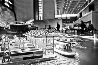 图为“筑基强国路——中国制造‘十四五’成就展”展出的上海洋山港模型。
