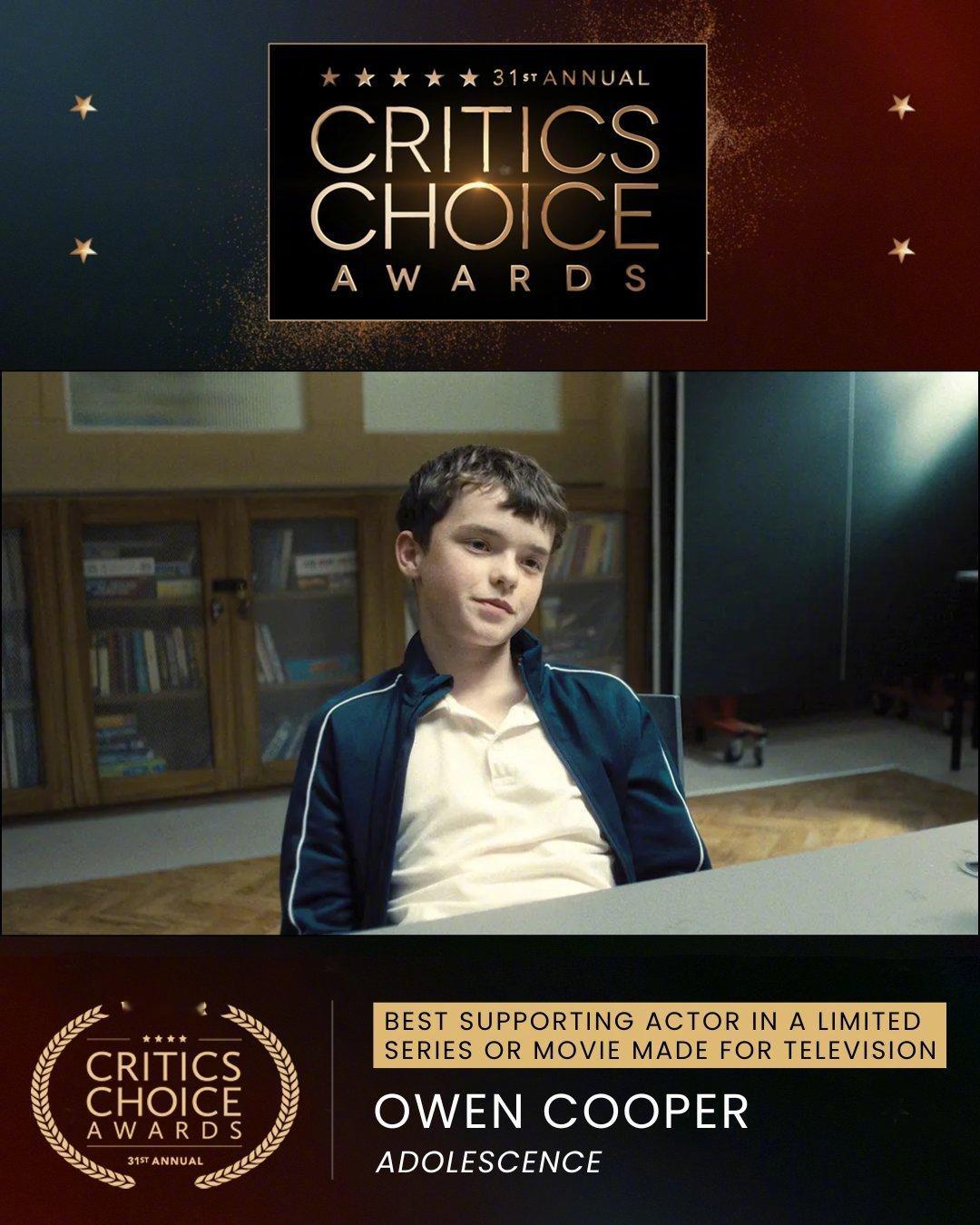 《混沌少年时》上大分,本届评论家选择奖已拿下三个奖项:限定剧/电视电影最佳男主角