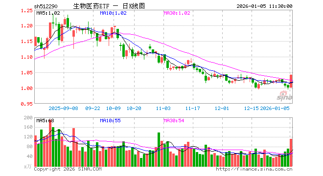 1月5日,截止午间收盘,生物医药ETF(512290)涨4.10%,报1.041元,成交额1.15亿元。生物医药ETF(512290)重仓股方面,药明康德截止午盘涨5.62%,恒瑞医药涨6.24%,迈瑞医疗涨4.56%,长春高新涨2.32%,上海莱士涨0.95%,百济神州涨11.46%,甘李药业涨0.85%,新产业涨3.47%,智飞生物涨2.17%,艾力斯涨2.64%。