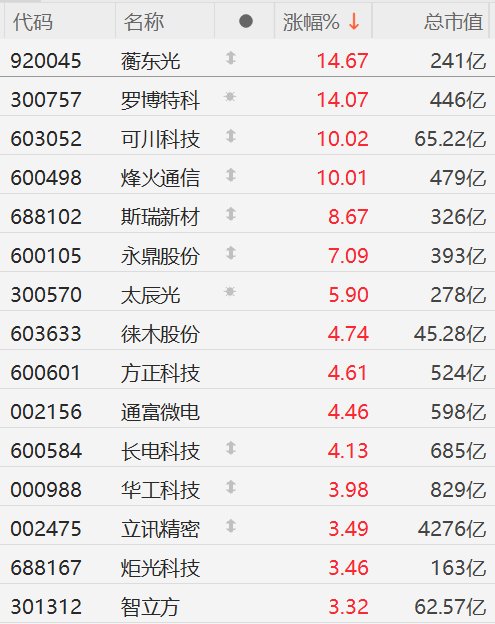 格隆汇1月5日|A股市场CPO概念股普涨,截至半日收盘,蘅东光、罗博特科涨超14%,可川科技、烽火通信10CM涨停,斯瑞新材涨超8%,永鼎股份涨7%,太辰光涨近6%。