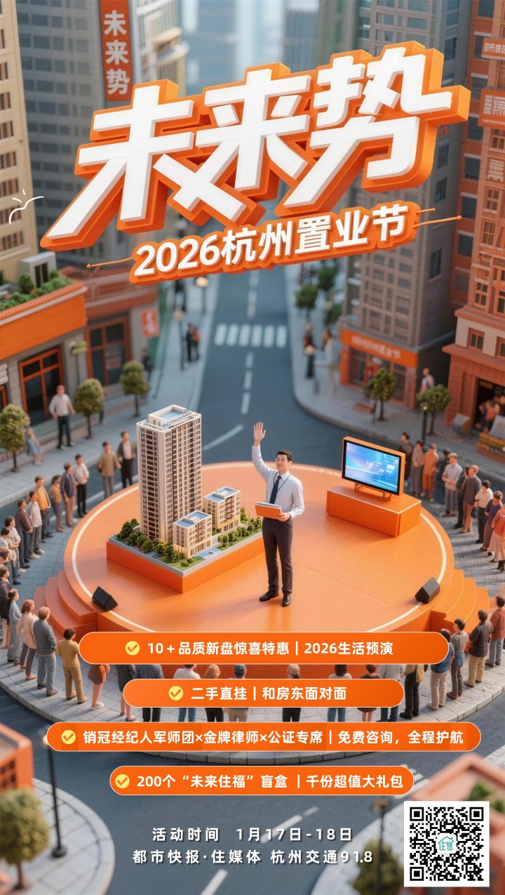 自2025年初“好房子”理念首次被写入政府工作报告,杭州房地产市场持续向高品质方向升级,优质房源供给不断。2026年新年伊始,都市快报住媒体联合杭州交通91.8,重磅推出“未来势”2026杭州置业节,为市民搭建一站式房产资讯与服务平台,助力购房者高效实现安居目标。