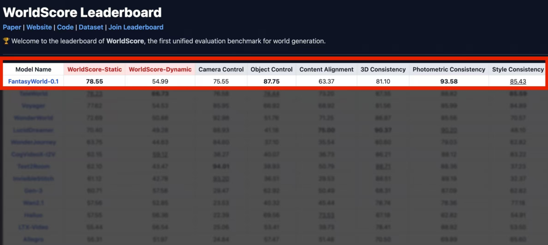 斯坦福大学教授李飞飞团队发布的WorldScore官网显示,高德世界模型目前综合得分位列第一。