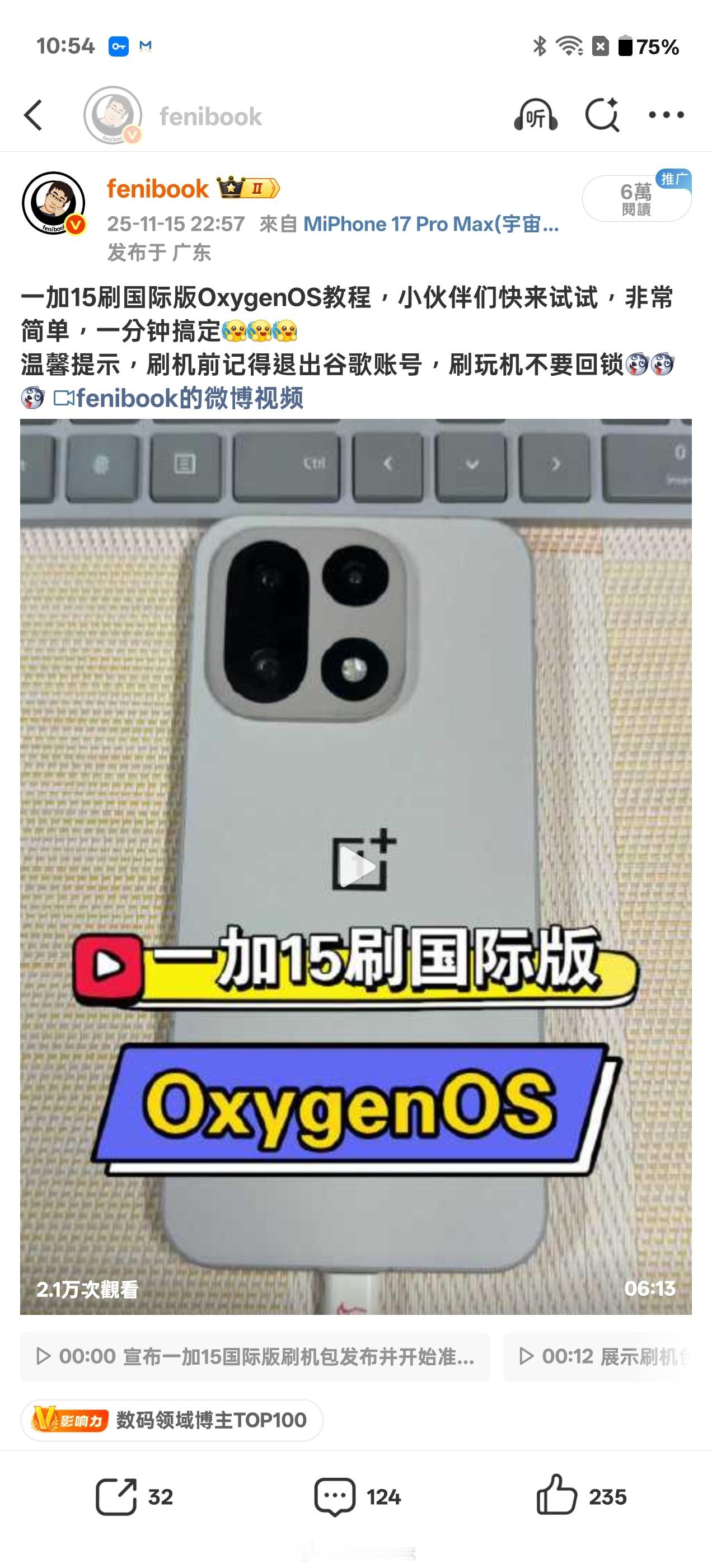 一加Ace 6也可以刷国际版Oxygen OS了虽然一加Ace 6并没有发布国际版,但是现在有移植包了,如图1,可以刷一加15或者一加15R的移植包,功能亲测一切正常,刷机教程可以参考我发的一加15刷机教程fenibook的每日分享最后,再补充下,为何要刷国际版,很多人问我都2026年了还有必要刷机吗?我来整理下国际版的好处,包括不局限于:1、没广告,干净,2、可以直接卸载乐划锁屏,可以直接关闭快应用,3、双击电源键启动相机,4、谷歌全家桶,Gemini,Circle to Search,5、快速分享,6、全局剪切板,7、自由安装应用,8、首次桌面下拉会弹窗提示搜索还是控制中心,9、控制中心的快捷开关形状更好看,10、关机重启更方便,等等等等