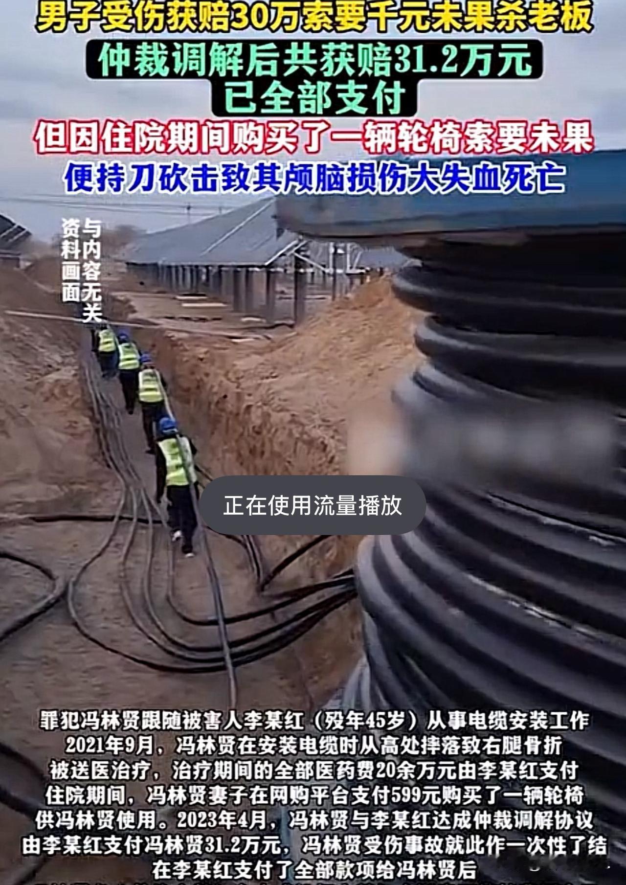 “贪得无厌!”江西上饶,一男在电缆安装现场作业时,脚下打滑,从高空坠落,导致右腿骨折,雇主为其支付了20万医药费。事后,男子闹到仲裁委向雇主索要赔偿。经调解雇主一次性赔偿男子31.2万元。可男子不肯善罢甘休,让雇主报销599元的轮椅钱。雇主认为该承担的责任已经承担,因此,果断拒绝了男子。男子一气之下,找上门去,向男子要1000元,雇主再次拒绝,雇主父亲见状,说给男子500元,可男子不干,双方起了争执。男子情绪激动,持刀砍击雇主头部,导致其颅脑损伤大失血死亡。雇主父亲上前劝阻,被男子持刀砍击头部致轻微伤。法院这样判了。 冯林贤,1972年12月11日出生,家住万年县上坊乡冯家村,只有小学文化。为了多赚点钱贴补家用,他跟着同村的李某红干起了电缆安装的活儿。 李某红和冯林贤虽是雇主与雇工的关系,但李某红为人仗义,平日里对冯林贤颇为照顾,冯林贤对李某红很感激。 然而,接下来发生了一场意外,让冯林贤对李某红反目成仇。 2021年9月,冯林贤在一处高空电缆安装现场作业时,脚下突然打滑,整个人直直摔了下来,导致右腿骨折,前后20多万元的医药费。 李某红二话不说,主动承担了这笔医药费。 住院部期间,冯林贤的妻子为了他方便活动,599元为其买了一辆轮椅。 事后,冯林贤认为自己受伤,李某红应该承担责任。 于是,闹到仲裁委,向李某红索要赔偿。 2023年4月,经仲裁委调解:李某红一次性支付冯林贤31.2万元,这笔钱包含了伤残补助金、误工费等所有相关费用,冯林贤的受伤事故就此一次性了结,双方再无瓜葛。 按理说拿到31.2万元赔偿款,冯林贤本该放下此事了。 没想到,他不肯善罢甘休,冯林贤便开始三番五次地往李某红家里跑,索要599元的轮椅钱。 面对冯林贤的纠缠,李某红一口咬定调解协议里已经把所有费用都算清楚了,一次性了结就意味着没有额外的报销项目。 可冯林贤根本听不进去,他认定了李某红是在故意赖账,心里的火气一天比一天旺,觉得自己摔断腿遭了罪,连这点小钱都要不回来,实在太憋屈了。 2024年5月25日上午11点多,冯林贤骑着一辆电动车,又一次堵到了李某红家门口。 他站在李家一楼的大门口,拦住正要出门的李某红,口气比以往都要强硬,张口就要1000元的轮椅费。 他觉得除了当初的599元,这几年轮椅的磨损也得算钱,多要几百块合情合理。 李某红很气愤,认为发生这样的事冯林贤自身也有责任,自己该赔的已经赔了,冯林贤没必要揪着自己不放。 因此,两人你一言我一语地争执起来,声音越来越大,很快惊动了李某红74岁的老父亲李某珠。 老人从屋里颤巍巍地走出来,看着满脸怒气的冯林贤,想着多一事不如少一事,赶紧从口袋里掏出500元钱递过去,好言好语地劝道:大兄弟,这点钱你先拿着,别再吵了,都不容易。 可在冯林贤眼里,这500元钱简直就是一种羞辱。 他觉得自己不是来乞讨的,是来要本该属于自己的钱!这500元不仅没平息他的怒火,反而让他瞬间红了眼。 他猛地从怀里掏出一把事先藏好的刀,朝着毫无防备的李某红就砍了过去。 李某红完全没料到冯林贤会动刀,根本来不及躲闪,锋利的刀刃直直砍中了他的头部。 鲜血瞬间喷涌而出,李某红闷哼一声,身子晃了晃,重重地倒在了地上,手脚还在痛苦地抽搐着。 此时的冯林贤已经彻底失去了理智,他双眼通红,握着刀一下又一下地朝着李某红砍去,脑子里只剩下一个念头:你不给我钱,你活该! 听到楼下的惨叫声,李某珠心急如焚,赶紧从楼梯上跑下来想阻拦。 看着倒在血泊里的儿子,老人又急又怕,不顾一切地冲上去想拉住冯林贤。 可杀红了眼的冯林贤哪里肯停手,他转身就朝着李某珠的头部砍去,老人躲闪不及,被刀刃划伤,顿时血流满面,疼得瘫坐在地上动弹不得。 不知过了多久,冯林贤才停下了挥舞的手臂。 他看着倒在地上的李某红和李某珠,才恢复了理智。 他知道自己闯下了天大的祸,跑是跑不掉的,索性扔掉手里的刀,在现场呆呆地站着,等着警察来抓自己。 没过多久,接到邻居报警的公安人员就赶到了现场。他们迅速控制住呆立在一旁的冯林贤,同时叫来救护车,将受伤的李某珠送往医院救治。 可遗憾的是,李某红因为颅脑损伤严重,失血过多,早已没了呼吸,年仅45岁。 经法医鉴定,李某红系被他人持锐器砍击头部致颅脑损伤大失血死亡,而李某珠的损伤程度为轻微伤。 《刑法》第232条的规定:以故意杀人罪判处罪犯冯林贤死刑,剥夺政治权利终身。经江西省高级人民法院、最高人民法院复核,核准罪犯冯林贤死刑,剥夺政治权利。 2025年12月11日将罪犯冯林贤验明正身,押赴刑场,执行死刑。