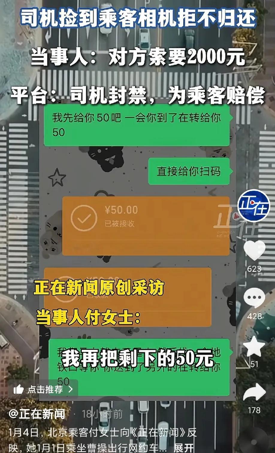 一贪到底两头吃!北京,付女士将3000元相机落在网约车,给司机转账50元约定送回,拿到后会再转50,谁料,司机刚收钱就把付女士拉黑了,甚至还要再加2000元才送回来,网友感慨: 拉黑乘客,拉黑平台工作人员,拉黑110 付女士第一时间发现相机丢后,就联系上司机,加了微信,直接给对方转过去50,并且承诺司机把相机送回来之后还会再付50。 谁知道司机收了钱之后竟然直接把付女士拉黑了,付女士非常生气,于是就找到平台的客服,投诉这个司机。 因为投诉信誉分下降,司机接单受到了限制,于是主动联系付女士,付女士还在跟司机商量,说可以想一个折中的方法来解决这个事情。 谁能想,司机这竟然说我留着相机也没有用,要不然我就给你扔了,要不然就转账2000元,赔偿他的精神损失费,误工费,名誉损失费。 甚至还说你只是我们的乘客,我们司机并不负责保管你们乘客的东西,甚至扬言你爱怎么样就怎么样,报警也好,投诉也行。 付女士只好无奈的说了一句,那好吧。 谁知这样简单的一句话也会惹怒司机,对方竟然骂道,你有毛病吧。 后来平台的工作人员多次联系司机,并且承诺可以垫付一笔钱,让司机把相机还给乘客,谁能想司机收下钱之后就把平台的工作人员也拉黑了。 无可奈何的平台只好表示会和乘客一起先去报警,会先把乘客的损失赔给她。 这种司机太没道德了,如果是那种不愿给一毛钱的还能理解,这种人家愿意给100感谢费,如果觉得不够,你们可以再谈呀,但是收下钱拉黑人,这算是怎么回事儿? 这司机这辈子就值3000元了,他以后的日子不过了吗,为了这么点钱,不会以为拉黑就找不到他了吧? 真不明白他图个啥呀, 现在好了,工作丢了,到时候说不定还要被拘留个几天, 啥都没了,本来送回去还能白得100块呢,就算他把相机私吞二手卖了,那也值不了几个钱呀