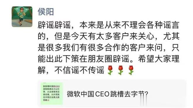 针对该传闻,侯阳通过朋友圈发文辟谣,明确表示传闻不实。