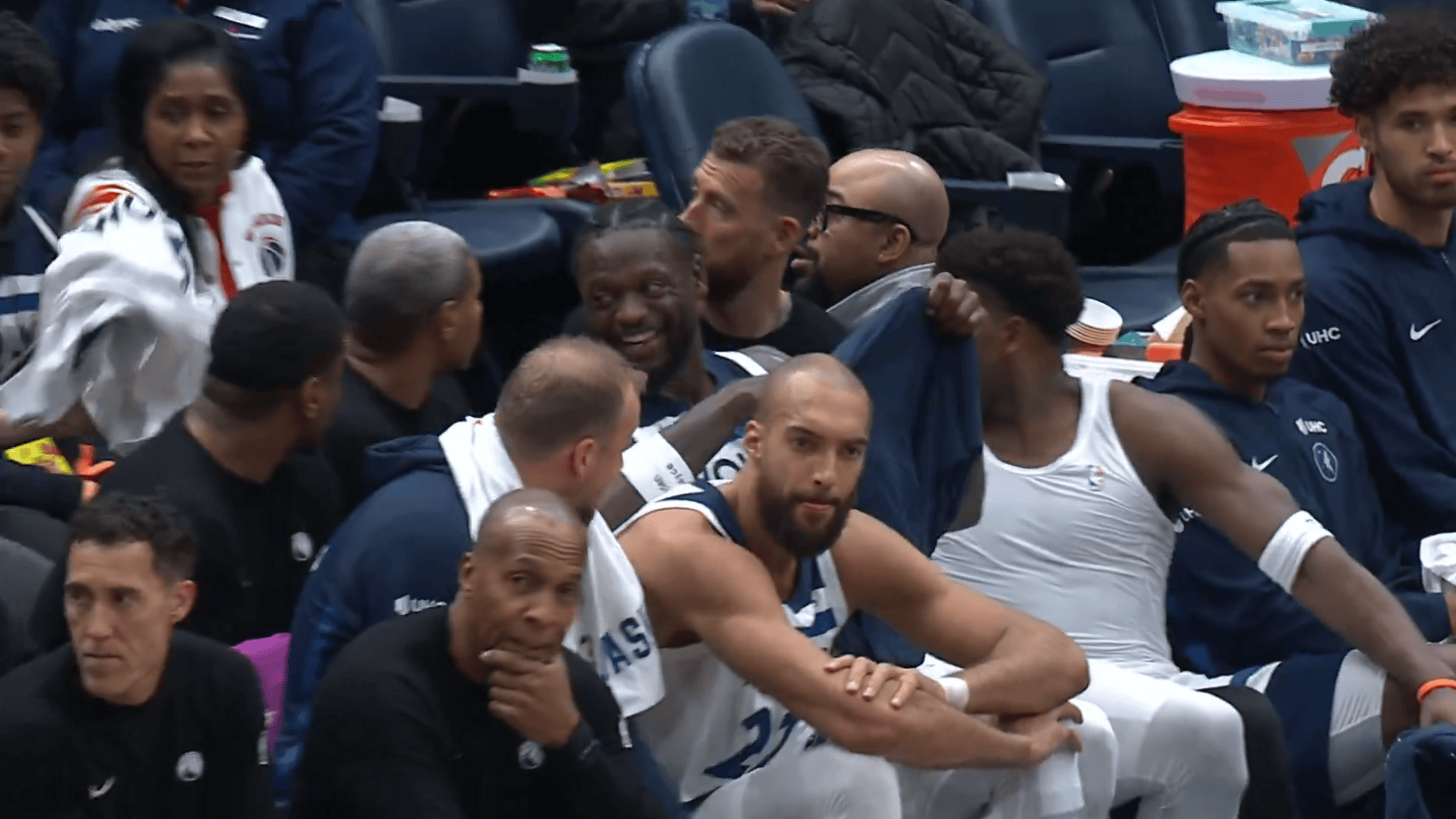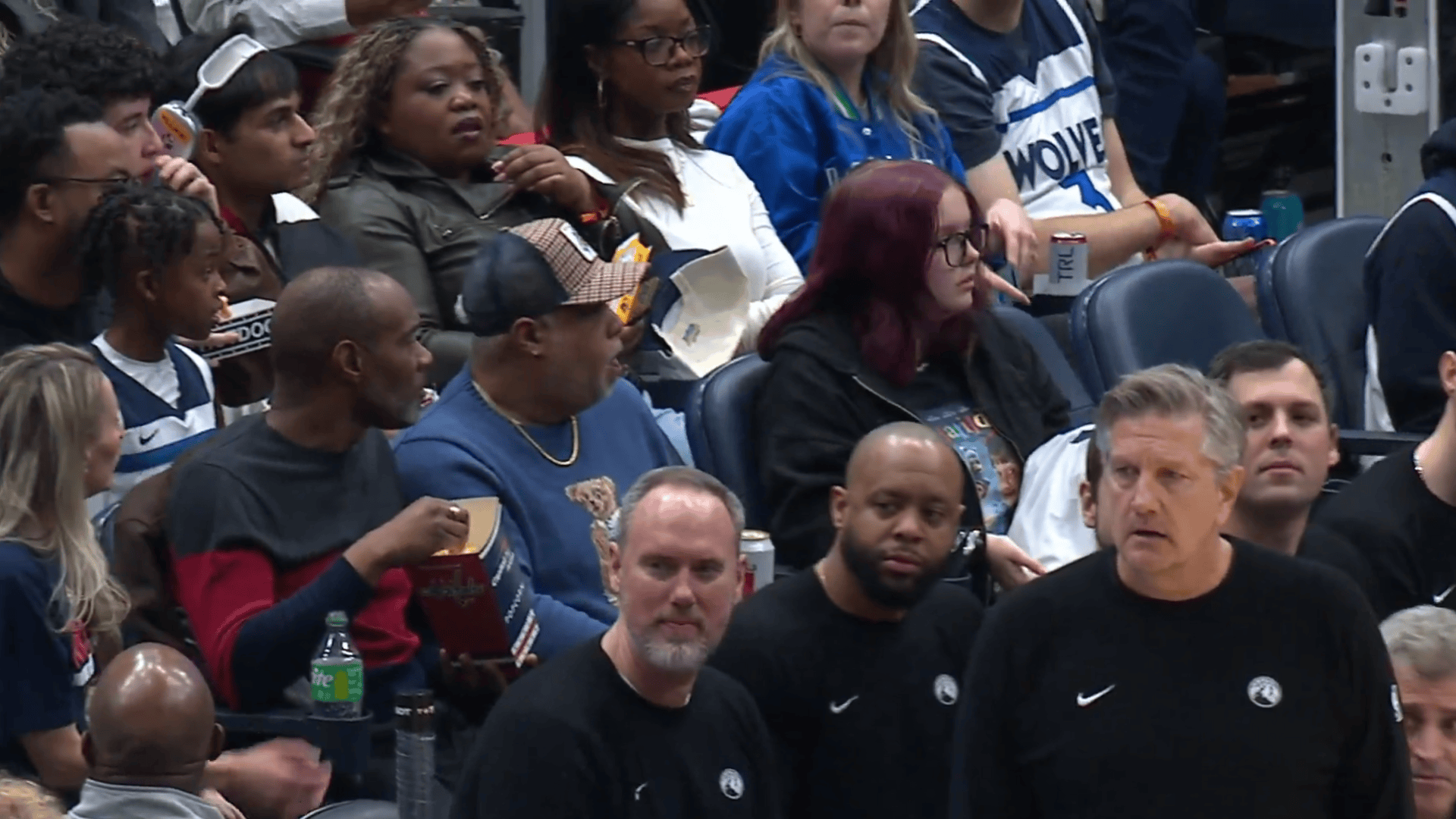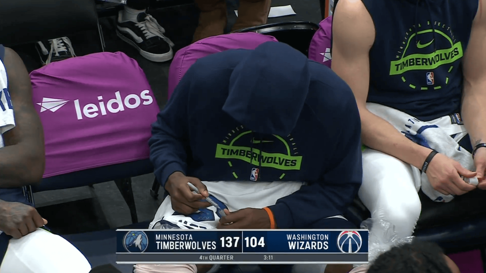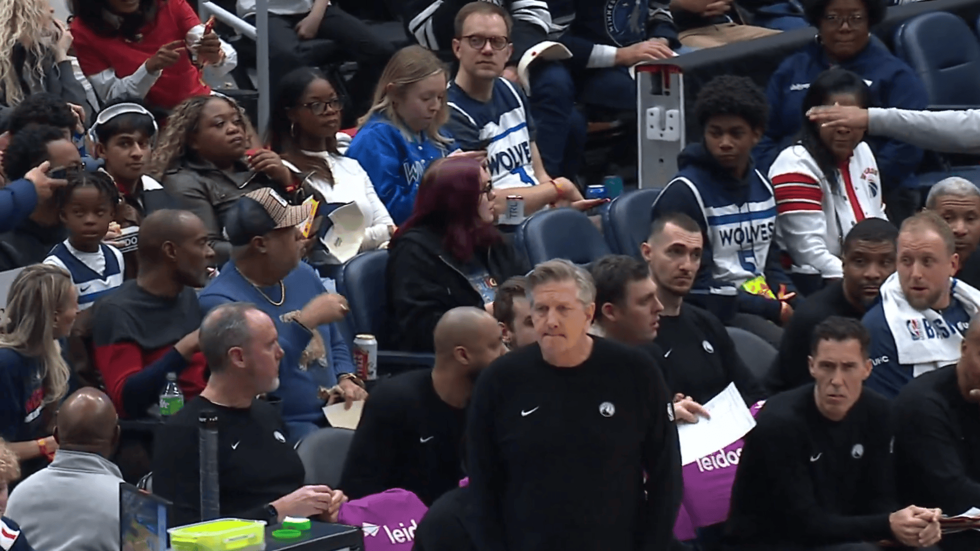 美媒赛后晒出视频:爱德华兹末节比赛中将比赛球衣脱下送给身后小球迷,但扔回去时候被一个女球迷“抢断”了,随后爱德华兹给小球迷自己身穿的球衣签上名送回给他。