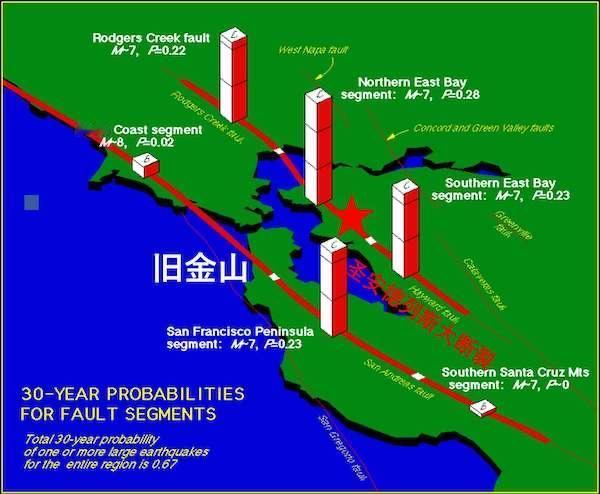 专家:北加东湾1日两次4级地震,未来巨震概率高达76%! 南加州大学地震研究中心 郦永刚教授撰文 据美国地质调查局报告,12月19日晚当地时间7:49pm和7:56pm在East Bay的圣拉蒙南5公里处发生两起M4级中等强度地震(見图1)。這是近两周该地区发生上百起群震 (earthquake swarm) 中最大震级的两次地震。 這两起M4级地震震深分别为9.3公里和9.9公里。图2显示4级地震引起的地面振动烈度(MMI)分布。震央区MMI=V度。湾区东部、圣拉蒙、海沃德、都柏林和普莱森顿居民均有震感。地震已连日袭击加利福尼亚州旧金山湾区。 12月16日星期二太平洋时间凌晨5点53分,在圣拉蒙附近发生一次3.1级地震。在此之前,圣拉蒙也曾多次遭受地震袭击,包括 12 月 13 日发生的 2.9 级、2.3 级和 2.2 级地震,12 月 14 日发生的 2.8 级地震,以及 12 月 15 日发生的 2.4 级和 2.1 级地震。此外,还有数十次较小的余震。 美国地质调查局(USGS)研究地球物理学家安妮玛丽·巴尔泰表示,当地居民对这些地震无需过度担忧,也不预示着圣拉蒙将会发生更大规模的地震。“但是,我们生活在地震带,所以我们应该时刻做好应对大地震的准备” 她补充道。“从现在到2043年,旧金山湾区发生6.7级或以上地震的概率为72%。因此,我们都应该提高警惕,做好准备。” 美国地质调查局(USGS)的数据显示,过去两个月里,圣拉蒙至少发生了21次地震,震级在2.9级到4.0级之间(見图3)。仅上个月,该市就记录到至少90次地震,但其中大多数震级太小,没有造成任何损失。 图4显示今晚在圣拉蒙发生的两次M4级地震的震源机制,为典型的水平走滑断裂(strike-slip faulting),滑移走向为西北至东南。说明地震发生在穿越当地的卡拉维拉斯断层(Calaveras Fault)上。该断层为圣安德列斯大断裂北段的东侧分支之一,往南与另一东侧分支海沃德断层(Hayward Fault)相连接,为北加州湾区地震最活跃的高风险区。USGS分析旧金山湾区在今后30年內,发生M6.7以上強震的概率高达76%(見图5)。 卡拉维拉斯断层的地质构造概况: 卡拉维拉斯断层主要是一条右旋走滑断层。2003年工作组报告将该断层分为三个段。卡拉维拉斯断层的北段几乎完全锁定,该段断层的蠕变速率在2至3毫米/年之间。在其中心段的南端,蠕变速率约为14毫米/年,向北逐渐降低至与海沃德断层交汇处的约6毫米/年(0.24英寸/年)。 卡拉维拉斯断层在与海沃德断层交汇处以北的总滑动速率约为6毫米/年,以南约为15毫米/年。 卡拉维拉斯断层中心段的北端在2007年10月发生了一次显著地震,即5.4级的Alum Rock地震,震源向南破裂。 历史上,卡拉维拉斯断层中心段的南半部分是该断层地震活动最活跃的区域。1984年,该区域发生了6.2级的Morgan Hill地震,1911年也发生了一次6.2级地震。1979年的5.9级Coyote Lake地震的震源略微偏南。由于该段的蠕变速率几乎与总断层滑动速率相匹配,因此人们普遍认为该段断层不会发生比1984年Morgan Hill地震震级更大的地震。 卡拉维拉斯断层北段的微震活动很少,这与其2至3毫米/年的低蠕变速率和几乎锁定的状态相符。2007年工作组报告确定该北段地表破裂地震的复发间隔为465±130年。 然而,我们目前只知道上次地表破裂地震发生在1776年之前。 加州地震概率2003年工作组预测,卡拉维拉斯断层在未来30年内发生6.7级或以上地震的概率为11%。