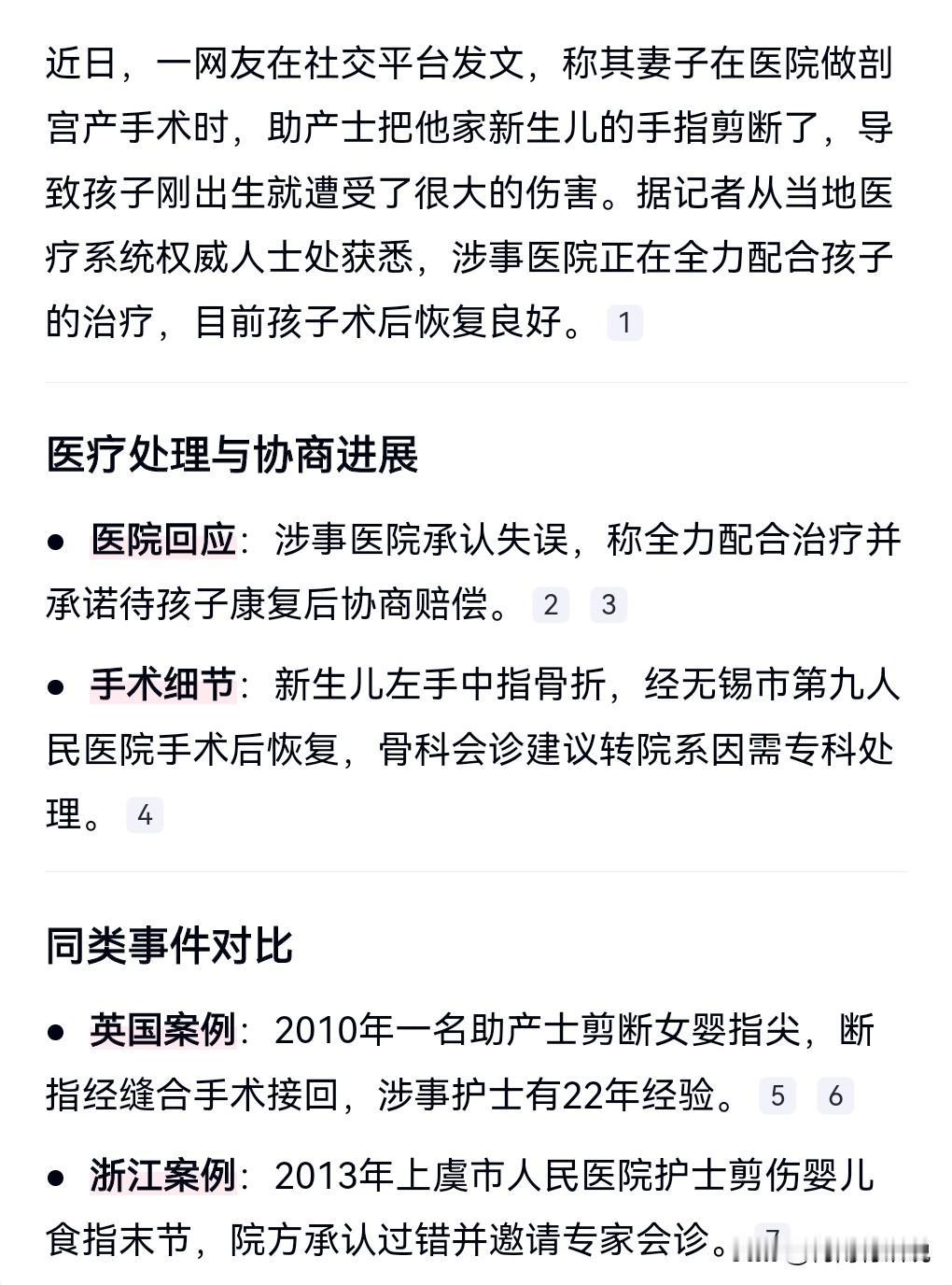 这也太粗心大意了吧,犯这种低级错误。 那医院必须赔偿啊。 新生儿剪脐带时疑被助产士剪断手指。 幸亏最后送到某医院接上了。 没有对孩子造成终身的影响。 但肇事医院那肯定是要负责任的,赔偿就不必说了,肯定是要有的。