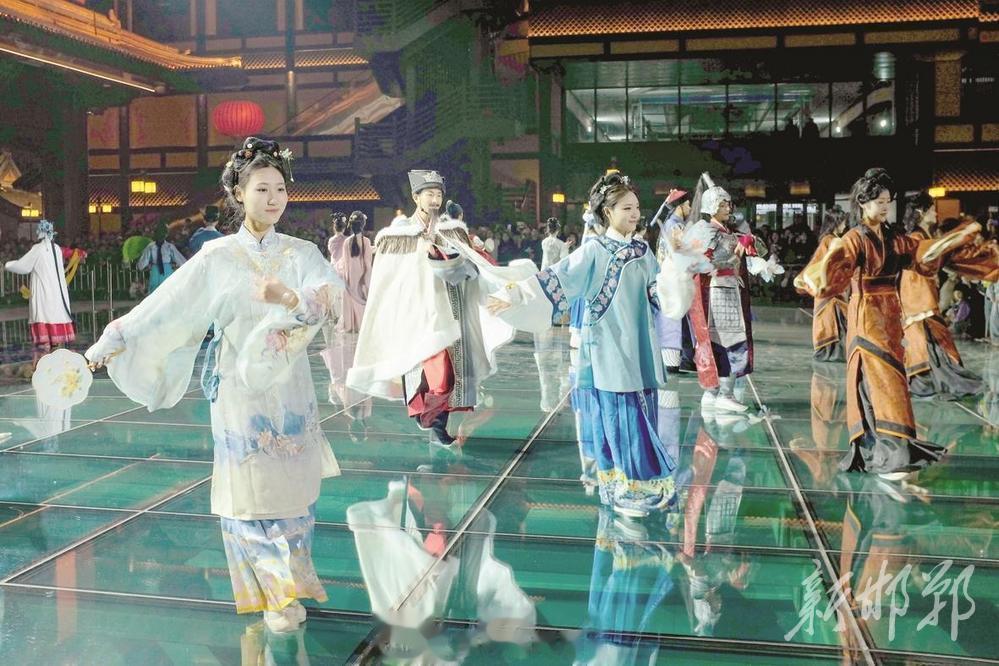 平日里的邯郸道同样精彩不断。漫步青石板路,常会遇上装扮历史名人的NPC巡游互动,不经意间重温“负荆请罪”等千古典故;夜幕降临,千架无人机组成的光影秀与古街飞檐相映成趣,成为市民饭后散步的必看景观;街头的戏剧片段、国潮快闪、非遗技艺展示轮番上演,不管是老人遛弯、年轻人约会,还是亲子出游,都能找到专属乐趣。