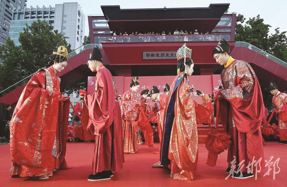“情订七夕缘相会邯郸道”中式集体婚礼在邯郸道历史文化街区举行。