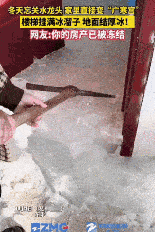 东北的冷果然名不虚传!男子要出远门,结果忘关水龙头,等他回家时发现家里已经变成了“广寒宫”,地面有十几厘米的冰。网友:这下不敢说南方更冷了。 那一刻,当你满心疲惫地结束外出办事回到家,手里攥着钥匙拧动门锁,期待的是那扑面而来的生活暖意,可这位东北大哥迎来的,却是一股来自“广寒宫”的凛冽森气。 这不是神话故事,而是发生在东北零下二三十度极寒天气里的真实一幕。因为出门前一个看似不起眼的疏忽忘了关掉那个淌着细流的水龙头,几天之后,这个家彻底换了一副天地。 还没进门,楼道里异常的低温和那一股子湿冷的潮气就已经在预警了,等到费劲踹开那扇似乎被某种力量封印的房门,“呼”的一声,比外头还要刺骨的白霜气流直接扑到了脸上。 平日里温馨的卧室、烟火气十足的厨房,如今全都不见了踪影,取而代之的是白茫茫一片的晶莹剔透。这可不是那种轻描淡写的结霜,而是结结实实、甚至可以穿冰鞋滑行的冰场。地面的积冰厚度哪怕是最薄的地方都得有好几厘米,厚实之处更是直逼十几厘米,那是足以把人的脚踝都没进去的深度。 那些平时吃饭用的桌子、坐的椅子,此刻都成了冰层里的“化石”,桌腿被死死地“铸”在了冰面下。你要想在这个家里走上两步,那得有点真功夫,不扎着马步重心下移,随时都能摔个四脚朝天。大哥站在门口,看着这宛如冰雪主题民宿的家,除了苦笑,大概只剩下深深的无力感。 很多人可能会觉得奇怪,既然屋里都冻成这样了,为什么水管里的水没把管子撑爆,反而还能流出来造孽呢?这就不得不感叹物理学的奇妙与残酷了。在东北的建筑构造里,自来水管通常埋在墙体或地下,本身就自带一定的保温Buff,再加上水龙头一直没关死,水流处于持续流动的状态。只要没彻底断流,活水本身带着的热量加上管道的余温,确实能抗住不结冰。 可问题就出在这流出来的水上。流出的水脱离了管道的保护,一旦接触到早已被冷透的地面,就像刷油漆一样,一层铺上一层。水在流,冰在结,低温环境就像一个不知疲倦的泥瓦匠,夜以继日地用冰层抬高着地面的海拔。 如果是静止的水,早就把水管冻裂了,偏偏这“细水长流”,生生把三室一厅浇灌成了一个巨型的透明琥珀。这也就是为什么有的网友纳闷“水管没冻屋里冻”,其实这是“动态水”与“静态温”的一场接力赛。 既然这“装修”是靠天然而成,想拆迁可就得靠人力死磕了。这种规模的积冰,靠抹布拖把简直是蚍蜉撼树。大哥没办法,只能摇人。亲戚朋友闻讯赶来,这哪是来做客的,手里拿的都是镐头、铁锨和重型冰铲,活脱脱一直像是要去极地探险的工程队。 一群人在屋里挥汗如雨,叮当乱响的凿冰声响彻楼层。大家伙儿小心翼翼地绕着家具腿挖,生怕这一铲子下去,冰没碎,椅子腿先折了。忙活了大半天,几个人累得腰酸背痛,也仅仅是勉强开辟出了几条能下脚的过道,就像在冰川上凿出的栈道。剩下那些犄角旮旯或者冻得太死的区域,只能先把碎冰装桶运出去,剩下的听天由命,等着它们自然融化。 看着这一屋子的冰碴子,不管是当事人还是围观的网友,其实心里都清楚,麻烦绝不止于铲冰这点体力活。这种极端冷热交替和湿气侵蚀,才是对房子的内伤。那些看似坚硬的地板砖,很可能已经被冰层膨胀的力量顶裂了;等到这一屋子冰化成水,墙角、地板缝隙渗进去的湿气,够让墙皮发霉脱落好几轮的。更别提那种隐性的管线损伤,全是真金白银的代价。 东北的冬天,是容不得半点马虎的“严师”。在南方,忘关水龙头顶多是让家里发大水、泡坏地板,虽然心疼但还能收拾;可在东北,极寒气温会把这个错误无限放大,瞬间把液体变成固体,把生活区变成无人区。这就不难理解为什么老一辈东北人过冬有那么多看似繁琐的规矩:出门断水断电,老旧房子甚至要排空水管,查看门窗密封条。 这些并不是什么多余的强迫症,而是与大自然相处多年总结出的生存智慧。对于外地人来说,这可能是一条“笑不活了”的短视频,是调侃“房产被冻结”的段子;但对于生活在这片黑土地上的人而言,这是实打实的教训。 每一个被冰封的角落都在提醒着:在绝对的低温面前,任何一丝生活细节的疏忽,都可能演变成一场兴师动众的灾难。大哥这次是拿着锄头把家给“刨”回来了,但也用最直观的方式给所有人上了一堂生动的冬季居家安全课。