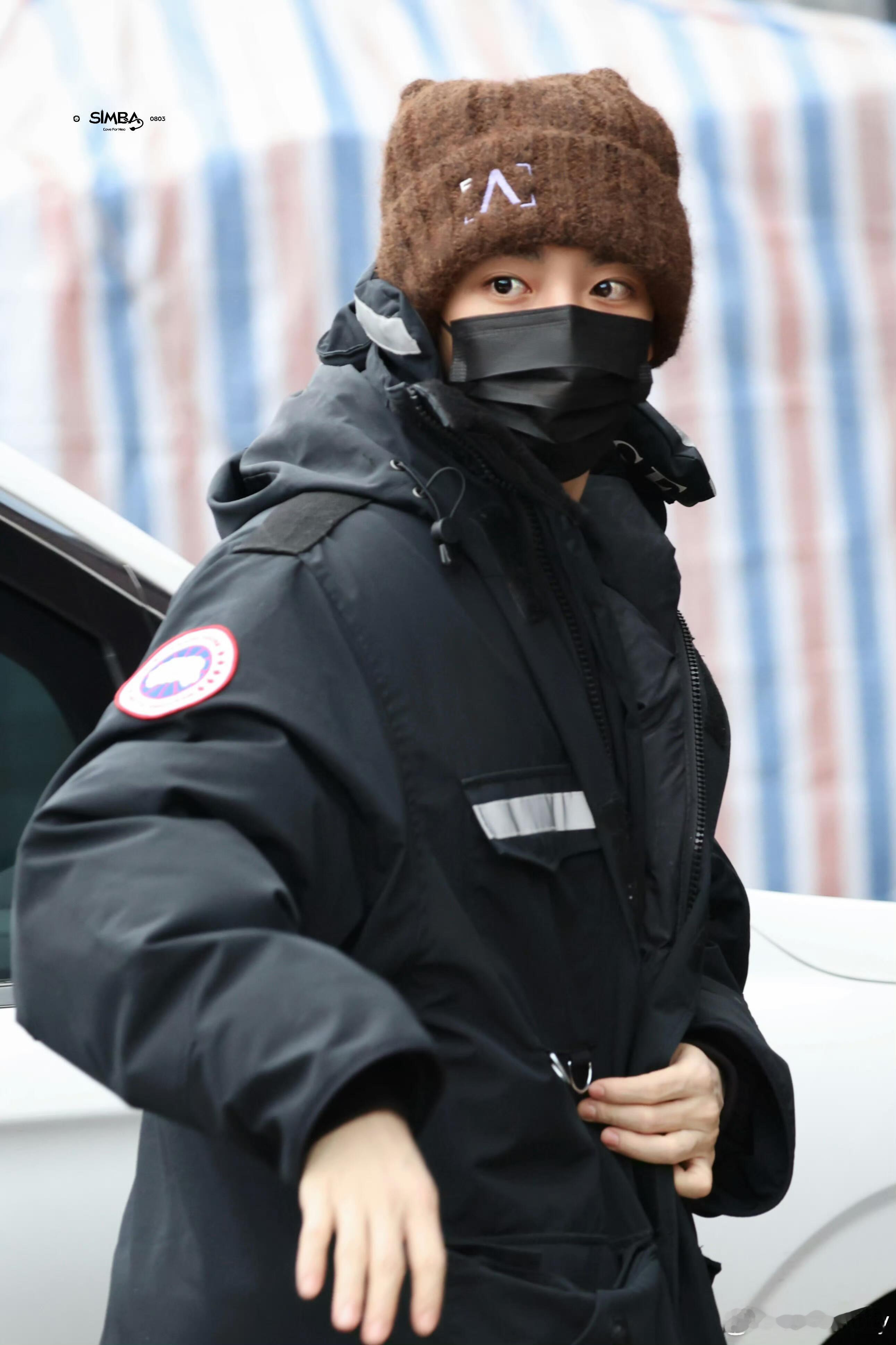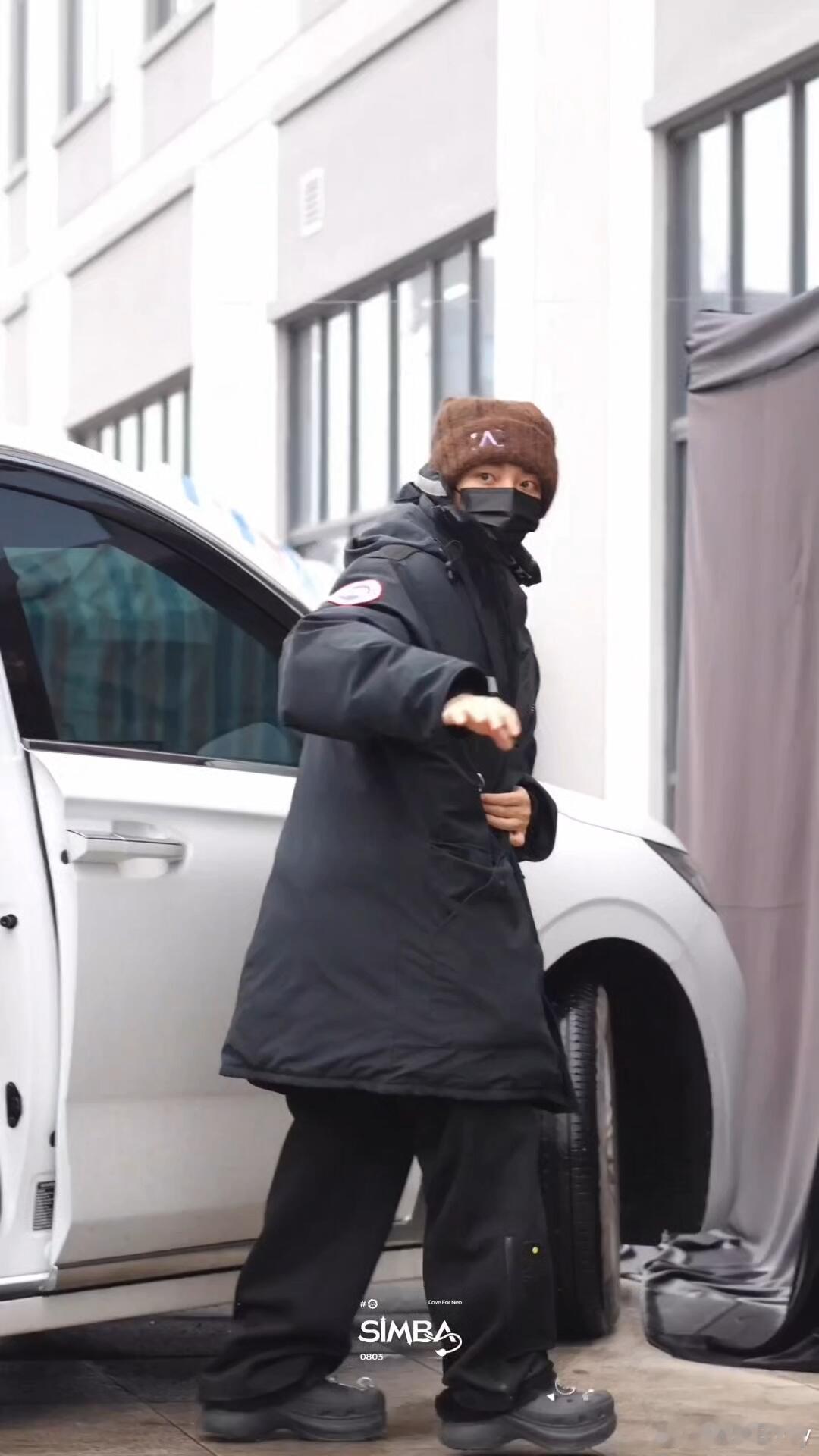 侯明昊|20260105 剧组上班look黑系冬日硬核保暖,大鹅羽绒服+毛绒帽,潮牌裤装配洞洞鞋,帅得毫不费力~帽子|FAD3AWAY外套|Canada Goose裤子|MEDM鞋履|Crocs卡骆驰