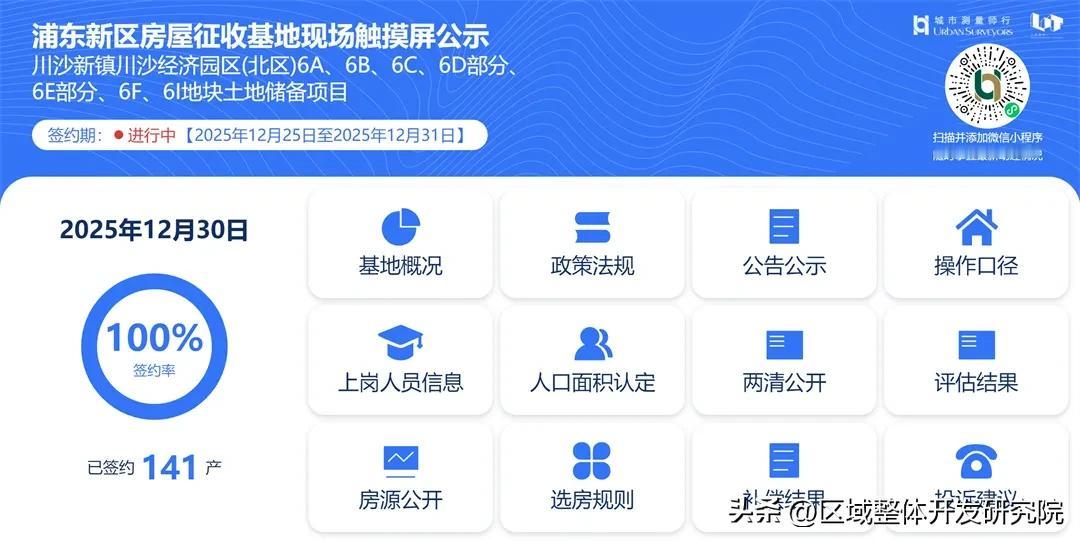 2025年12月30日,随着最后一户居民落笔签字,川沙新镇川沙经济园区(北区)6A、6B、6C、6D部分、6E部分、6F、6I地块土地储备项目提前1天实现141户居民100%签约,为项目推进写下了圆满的阶段性注脚,也为川沙经济园区高质量发展注入强劲动力。