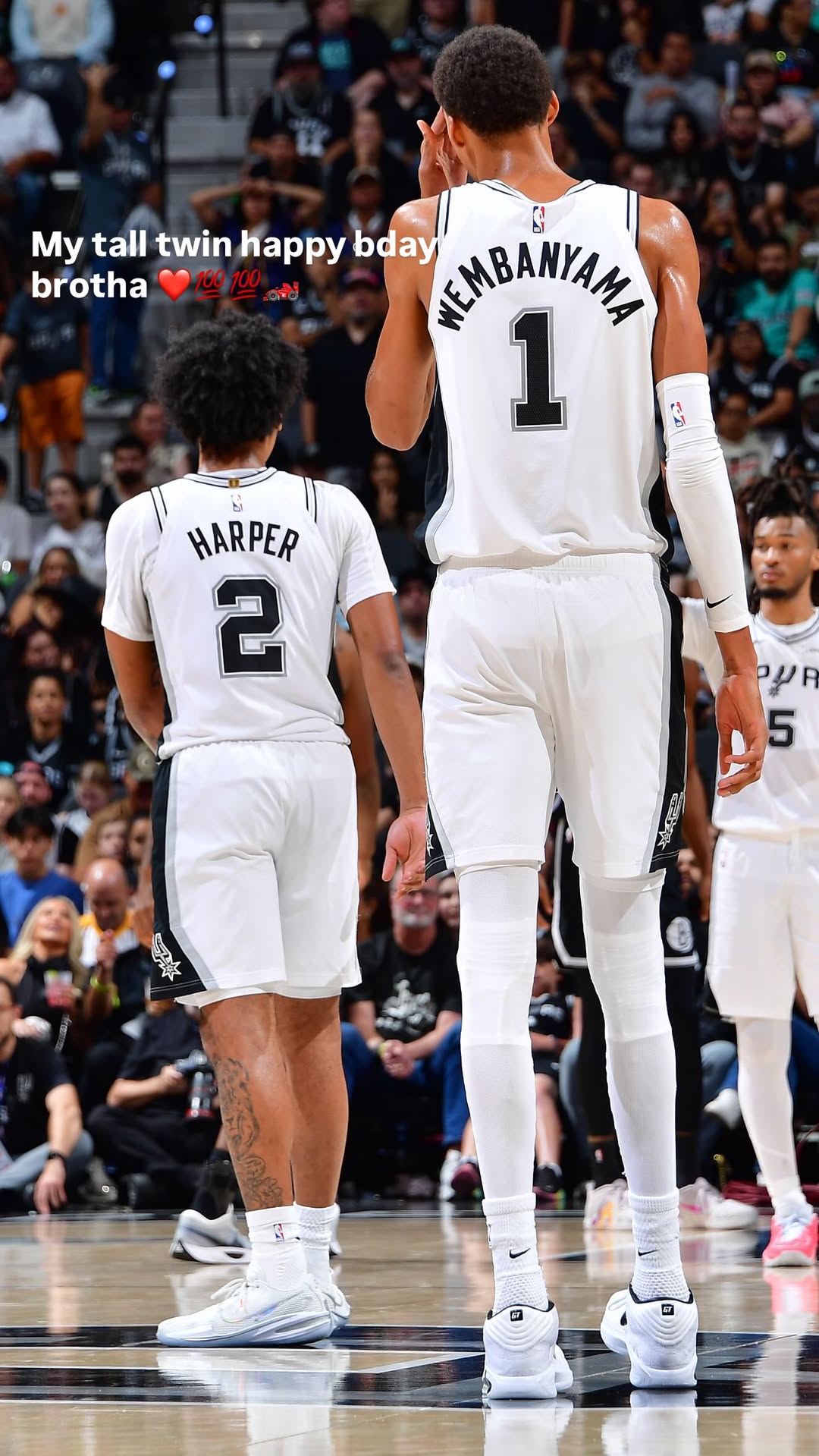 虎扑01月05日讯马刺球员迪伦-哈珀更新Ins,晒出一张和队友维克托-文班亚马的合影与球迷分享。