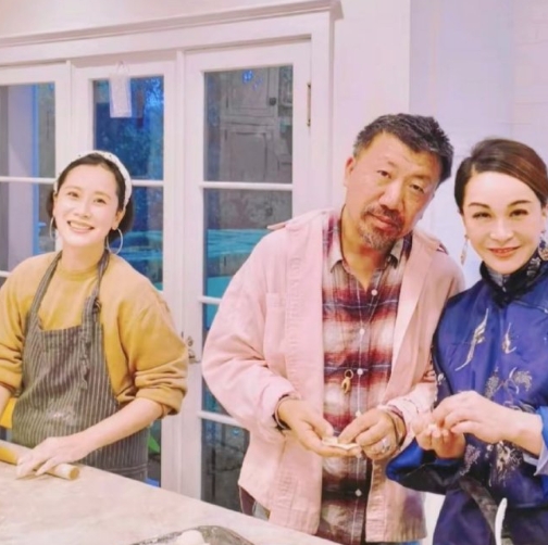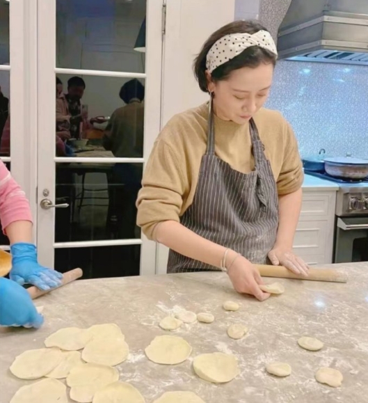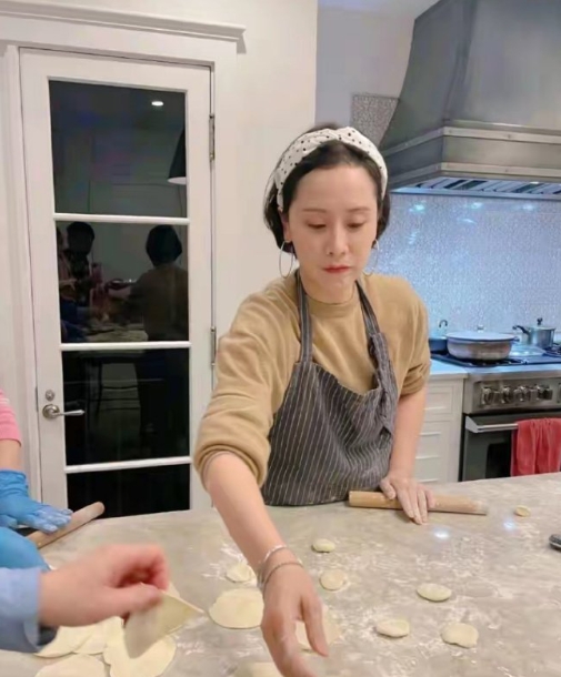 47岁海清在家包饺子款待朋友,手法非常熟练,好有烟火气息
