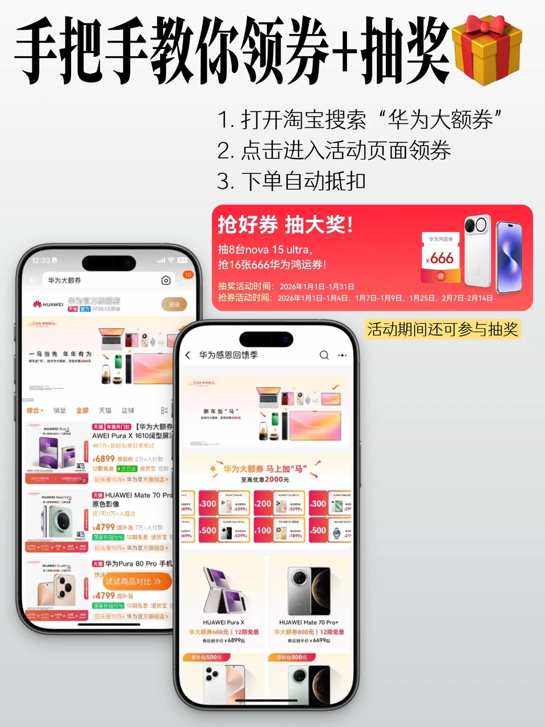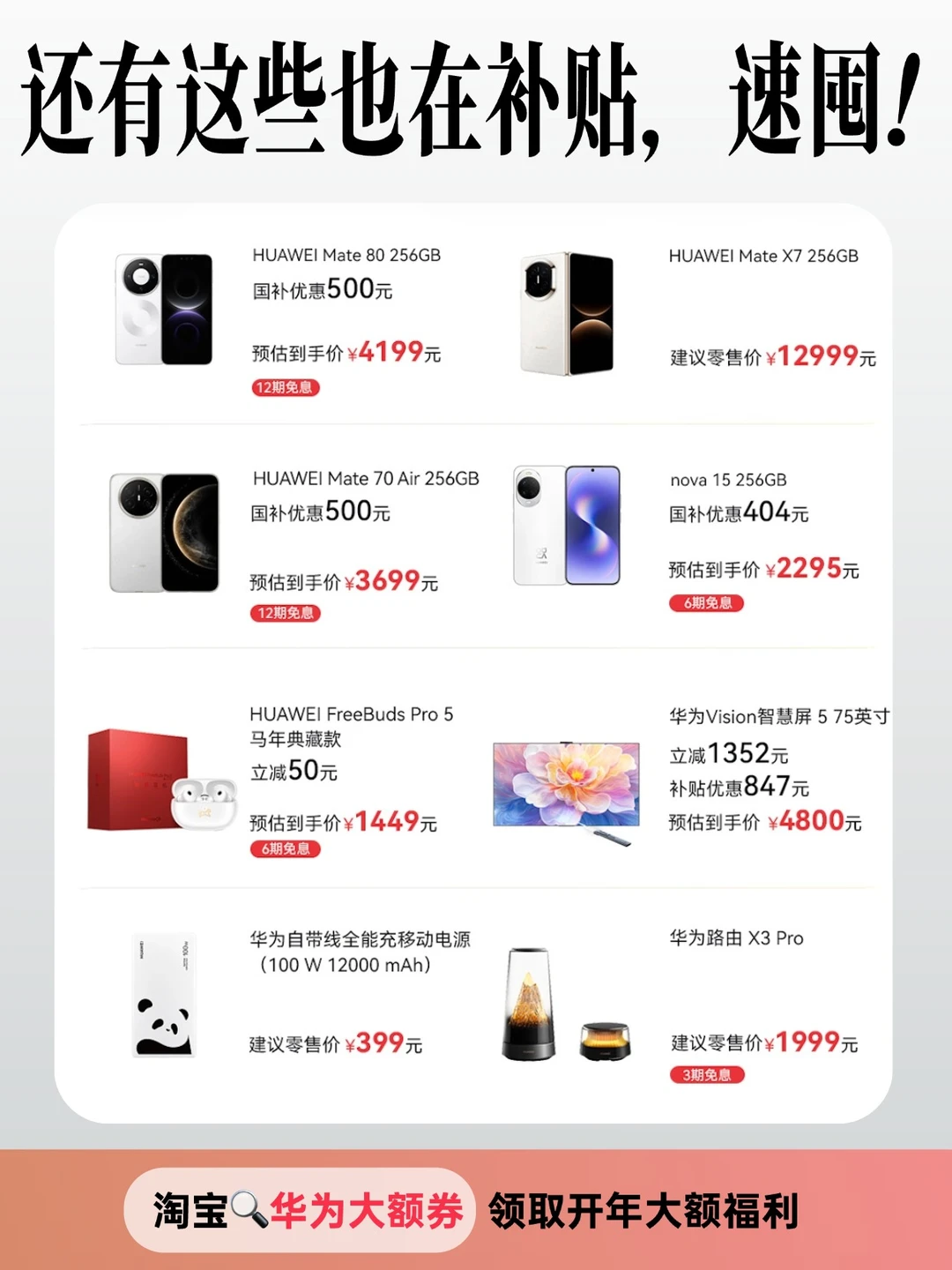 现在就上淘宝搜索🔍“华为大额券”,抢券额至高2000元的大额优惠券,领了直接就能用!