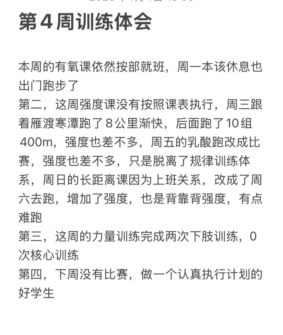 冬训第四周训练计划,记录一下