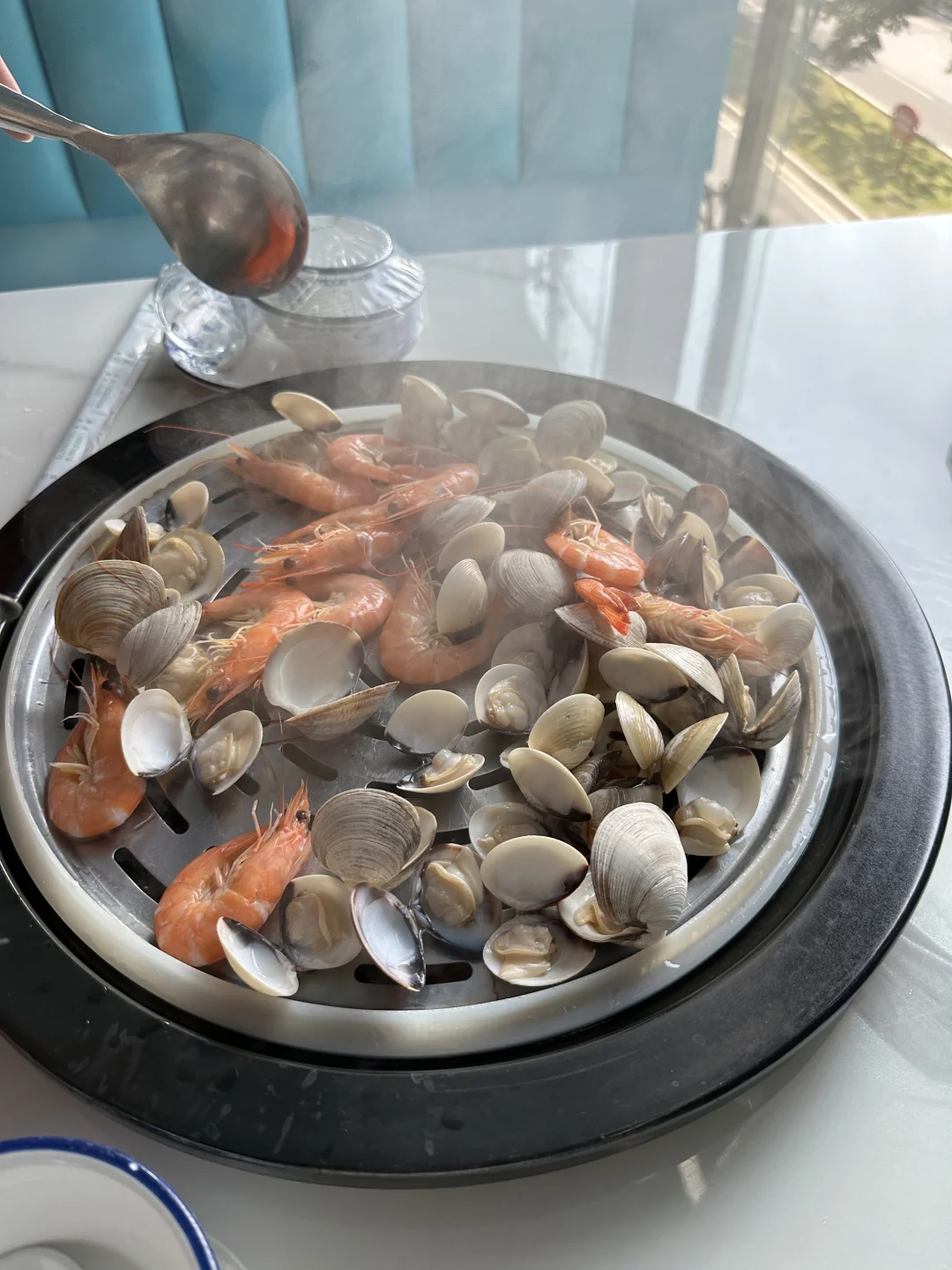玩到肚子咕咕叫,果断骑电动杀去京溪南方医院地铁站!🦞 直奔那家超火的蒸汽海鲜店,现捞现蒸的海鲜,鲜掉眉毛!虾蟹饱满多汁,蒜蓉粉丝蒸扇贝香到舔盘,大口吃肉的快乐谁懂啊!
