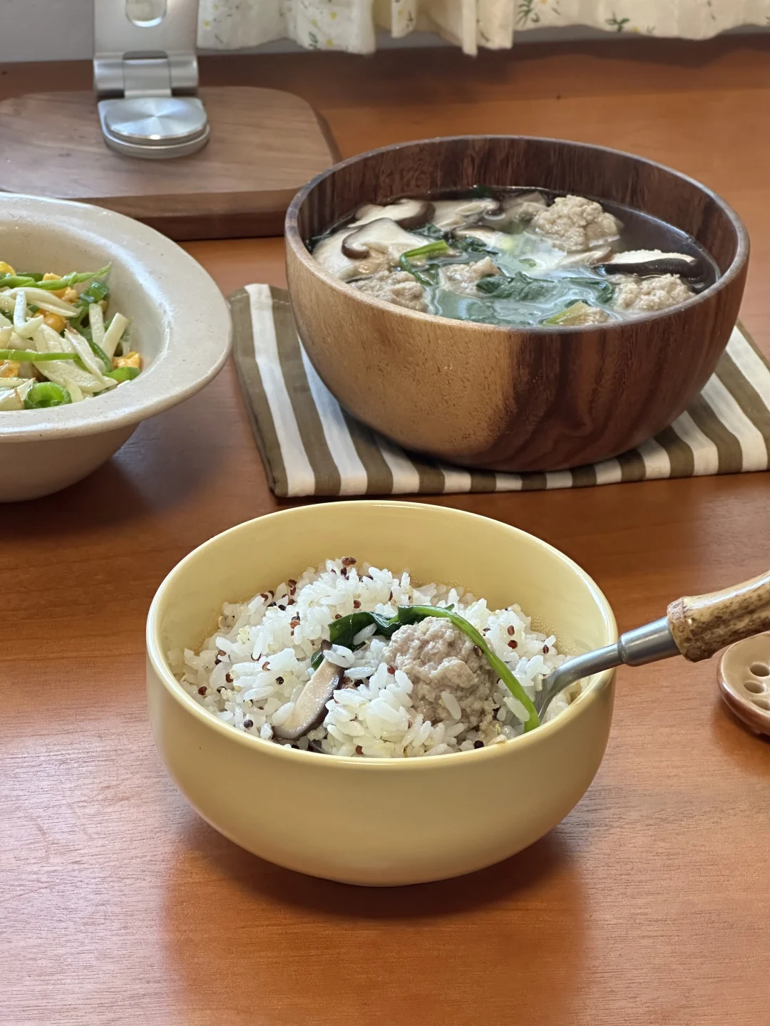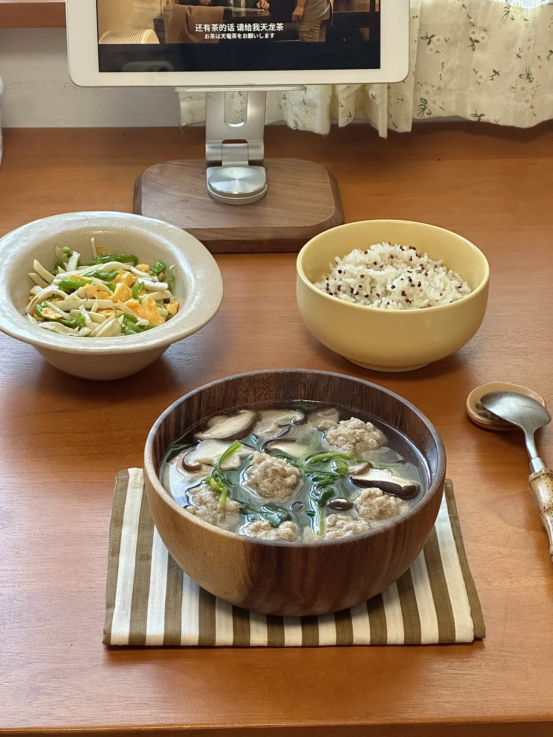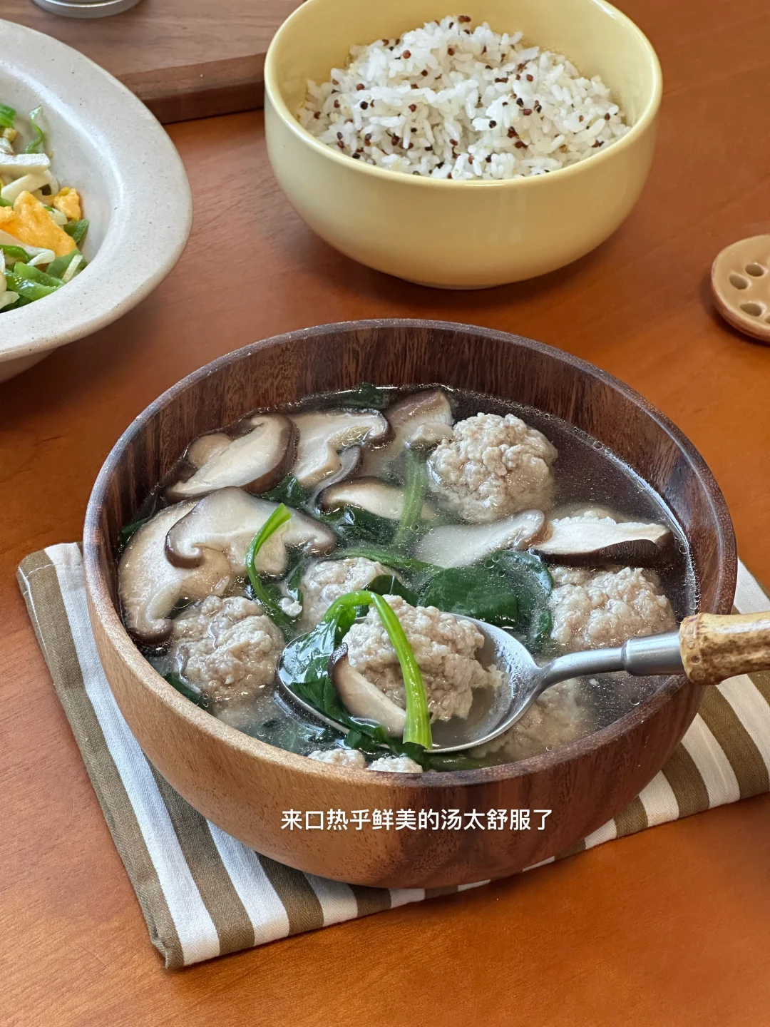 🥄今日菜单: 香菇肉圆菠菜汤 藜麦饭 茭白青椒炒蛋 . 详细做法步骤图往后翻~ . 安徽就这么突然下雪咯 这么冷的天 煮一锅热乎的肉圆汤喝吧~ 热汤配热饭菜 幸福满满! 藜麦饭就是藜麦和大米一起正常煮饭就行了 .