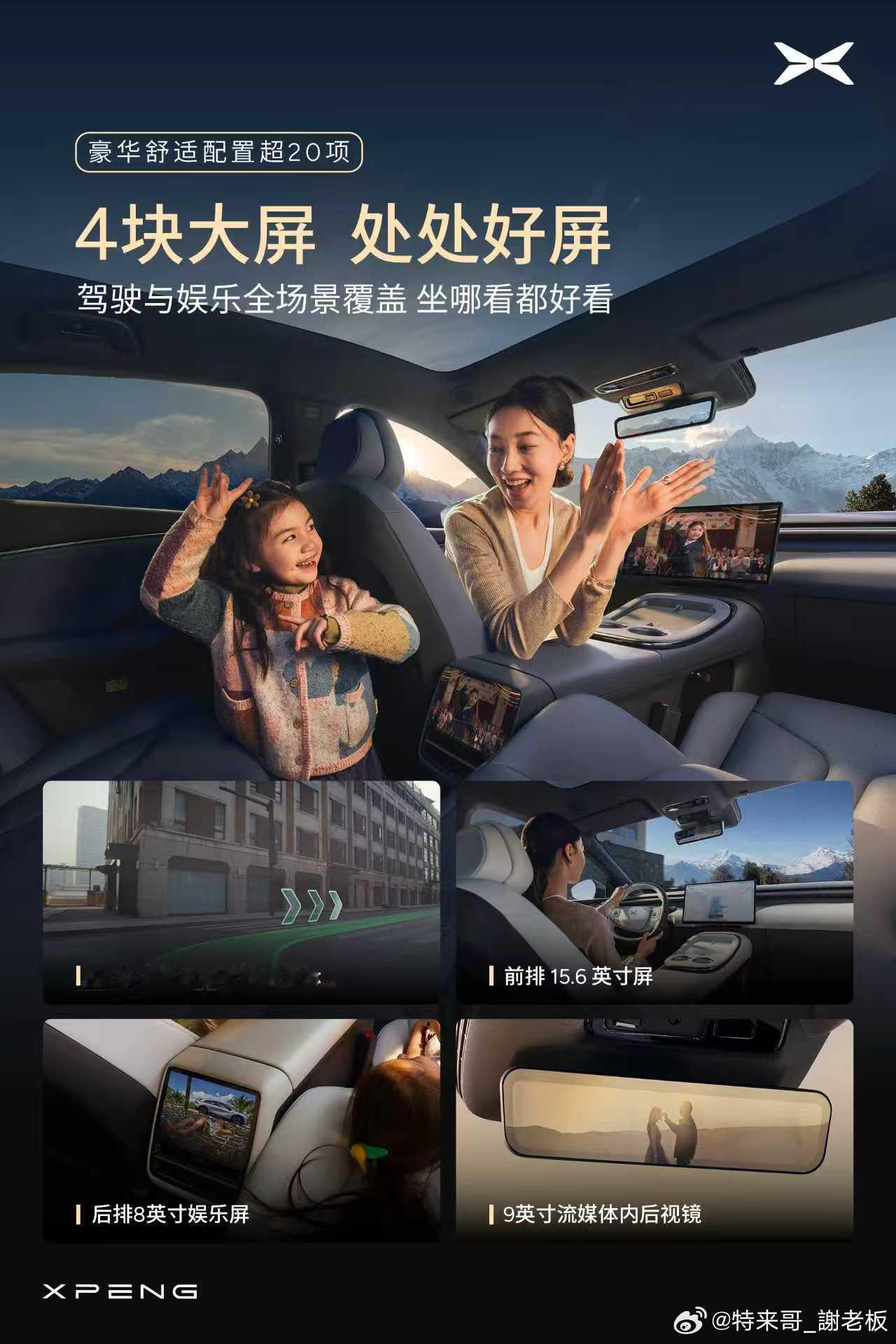 小鹏G7超级增程40万级豪华配置超20项2026小鹏全球新品发布会定档1月8日小鹏G7超级增程超20项豪华舒适配置一部到位,从触感、体感、空间到行驶时安静与稳定,4块大屏坐哪看都好看、前排后排坐坐都是VIP、全车氛围感拉满、还有环保材质带来实实在在的安心。小鹏G7超级增程带来无与伦比的驾乘体验,让出行多一点舒心,多一点从容。