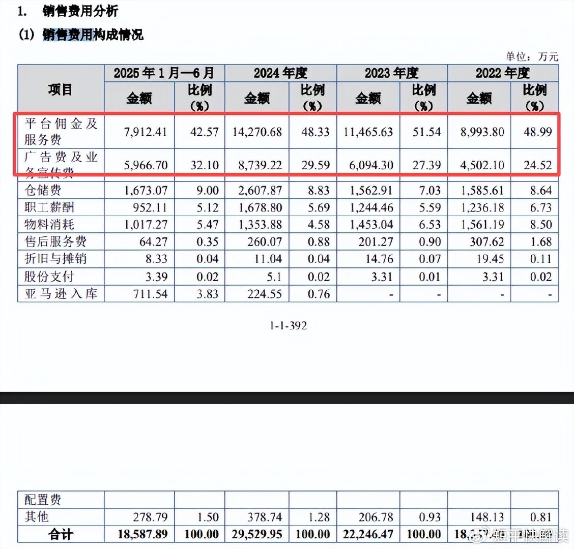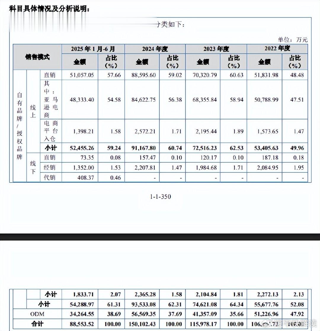 其中来自亚马逊电商的收入分别为5.08亿元、6.84亿元、8.46亿元、4.83亿元,占比分别为47.51%、58.94%、56.38%、54.58%。