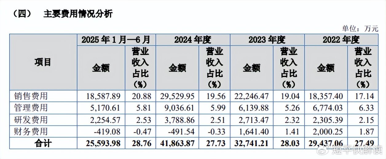 对比自身,不管是销售费用,还是管理费用,均远超研发费用,前者分别为18,357.40万元、22,246.47万元、29,529.95万元、18,587.89万元,后者分别为6,774.03万元、6,139.88万元、9,036.61万元、5,170.61万元,期末金额分别是研发费用的8.24倍、2.29倍,期末费用率分别为20.88%、5.81%,显然公司属于营销驱动型公司。