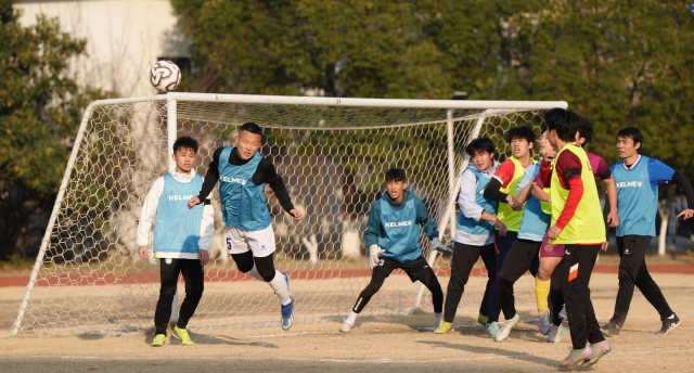 尽快天气降温,但选拔现场很是火热。文海启源中学的绿茵场上,球员们身着搭载GPS传感器的背心,进行折返跑、变速跑等体能与动态测试。同时,使用内置芯片的智能足球完成传接、射门等专项技术测试。