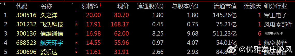 【财富晚茶】突发利好:今发改委:公布低空经济先载货后载人等导语:作者系《网易号》优质财经领域创作者。曾经原创作者和知名网易号旅游领域创作者。大跨度行业等的写作,颇受网友喜爱。作品发表于2026.01.05.15:18 优雅端庄晚风。【内容提要】前瞻一下:周一行情:开门红不开也难。2026年1月5日:政策利好:主要集中:低空经济、新能源车、设备更新、以旧换新等领域,今日帮你梳理重点。一、期待五日:重大利好政策1、低空经济:重点锁定第一、核心政策国家发改委明确“先载货后载人”原则,为商业化铺路。第二、受益企业:关注之一:一般关注:300516 久之洋 301232 飞沃科技 300136 信维通信 688523 航天环宇关注之二:估值关注:300696 爱乐达关注之三:信息关注亿航智能:纳斯达克上市。全球eVTOL标杆,EH216-S已获适航认证。688070 纵横股份:工业无人机龙头,正布局低空物流。002465 海格通信:提供低空通信、导航一体化方案。002414 高德红外:红外传感器技术龙头,受益低空安防。2、新能源车:政策调整关注之一:一般关注:603344 星德胜 600501 航天晨光关注之二:估值关注:002347 泰尔股份603331 百达精工002735 王子新材关注之三:信息关注理想汽车:纳斯达克上市。兜底购置税至2026年1月5日,稳定市场预期。政策调整:新政策可能涉及购置税减免、补贴力度和技术标准。3、设备更新:以旧换新支持范围:民生领域(老旧小区加装电梯、养老机构设备更新)、安全领域(消防救援、检验检测设备更新)、消费基础设施领域(商业综合体、购物中心设备更新)。补贴标准:汽车报废更新和置换更新补贴、家电以旧换新补贴(冰箱、洗衣机、电视、空调、电脑、热水器)、数码和智能产品购新补贴(手机、平板、智能手表、智能家居产品)。二、潮涌五日:消费房税攻略其他政策:个人销售住房增值税1、个人销售:房增值税个人销售住房增值税:购买不足2年的住房对外销售按3%征收率全额缴纳增值税,购买2年以上(含2年)的住房对外销售免征增值税。2、房公积金:贷款利率住房公积金贷款利率:2025年5月8日以前已发放的住房公积金贷款利率下调0.25个百分点。3、普惠幼儿:园保教费幼儿园收费政策:普惠性幼儿园保教费、住宿费实行政府指导价。4、电动汽车:电耗限值电动汽车电耗限值:新标准实施后,电动汽车续驶里程平均提高约7%。含汞体温计和血压计:全面禁止生产。以上这些:政策将直接影响相关行业和企业。可以重点:关注低空经济、新能源车和设备更新领域的机会。三、本创作者:网易优质作者投资投机迷茫之中:给予尽可能有帮助:资本市场风险自负。(优雅端庄晚风《网易号》财经领域创作者和原创作者 违者必究)