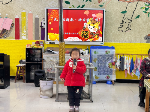 孩子们在老师的带领下体验传统年俗:巧手剪窗花、写福字、对联、绘制元旦贺卡。在“亲子趣味运动会”中,“蒙眼找娃”、“套圈”等游戏让活动现场欢声雷动。文艺汇演将活动推向高潮,孩子们表演了歌舞《新年好》、情景剧《年的故事》等精彩节目。稚嫩的歌声、活泼的舞姿展现出孩子们的自信与成长。汇演最后,全体师生合唱《欢乐中国年》,园长妈妈为每个孩子送上了精心准备的新年礼物,希望他们在新的一年里继续探索世界的奥秘。