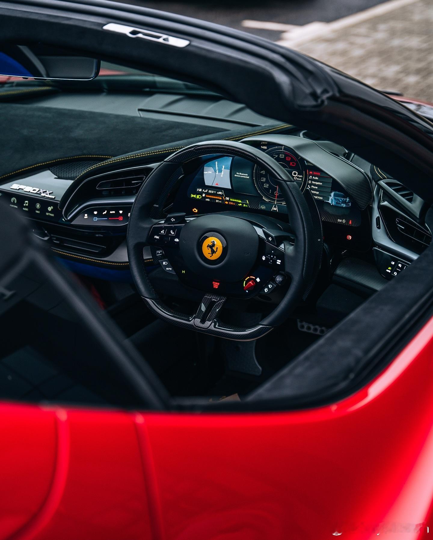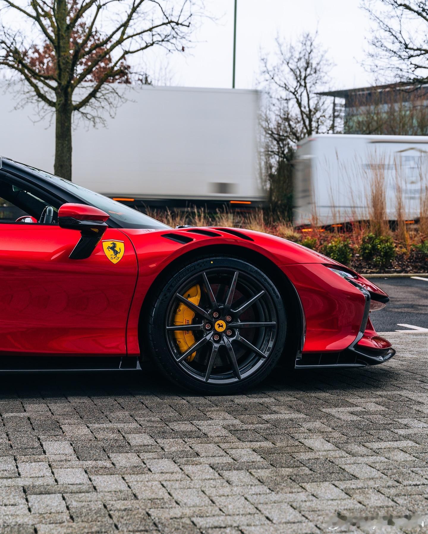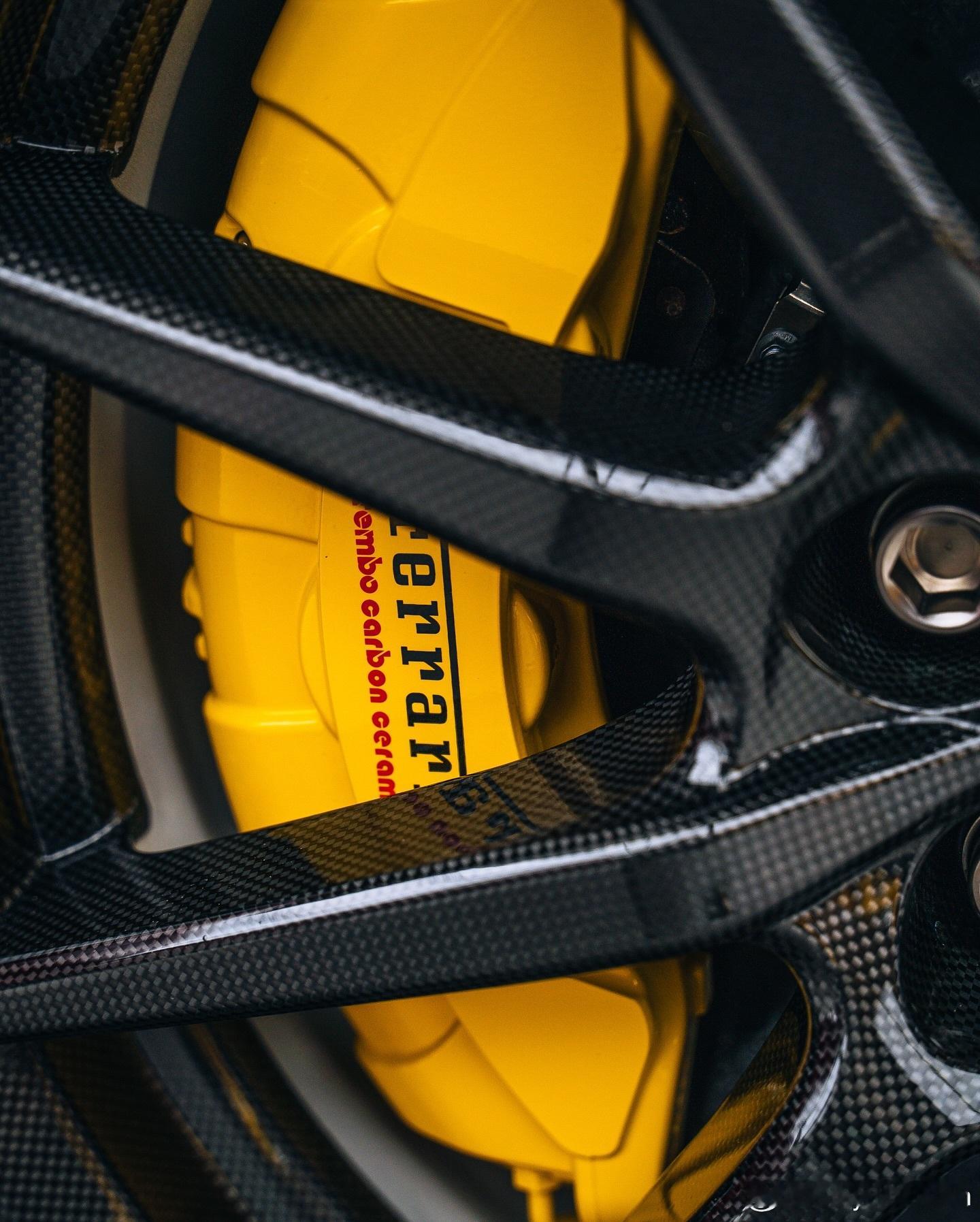 外观配色为Rosso Magma,尾翼的薄边以及两侧选择了黄色细节点缀,内饰则为Blu Elettrico Alcantara,此外,外观上还选择了碳纤维轮毂和漆盾。这样的选配基本上是如今法拉利限量款最为保险的选配方式了。交付于位于英国伦敦的HR Owen Ferrari。图片来自